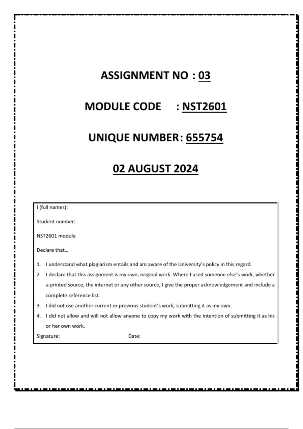 2. I declare that this assignment is my own, original work. Where I used someone else’s work, whether