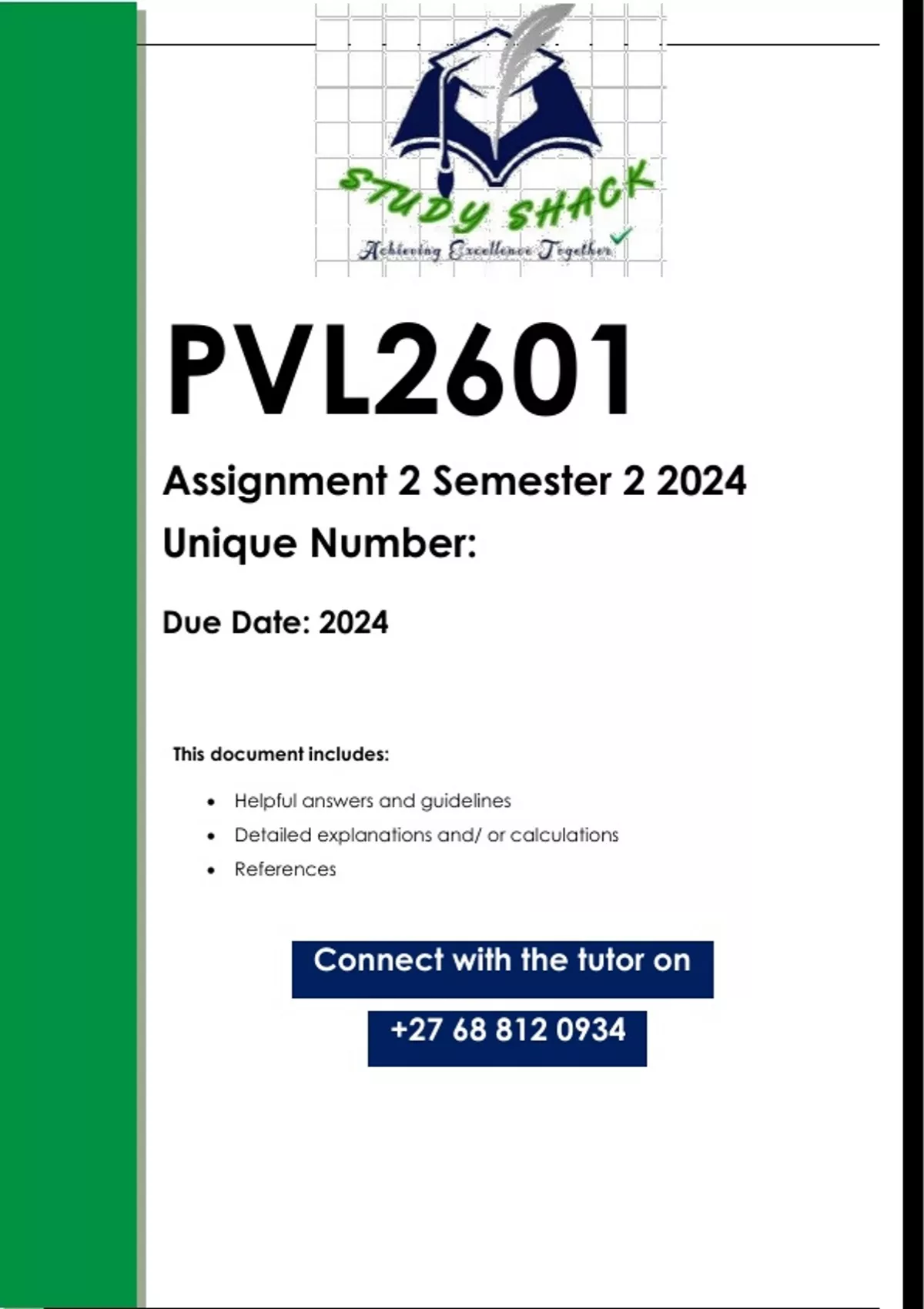 This document contains workings, explanations and solutions to the PVL2601 Assignment 2 (QUALITY ANSWERS) Semester 2 2024. For assistance whats-app us on 0.6.8..8.1.2..0.9.3.4... Question 1 For the past ten years, Ben has known that he is sterile. As Mary has repeatedly told Ben that she wants children, Ben fears that Mary will not want marry him if he tells her about his sterility. A year after the wedding, Ben tells Mary that he is sterile. Mary tells Ben that she would never have married him had she known that he was sterile. (a) Explain the meaning term of “voidable civil marriage”. (2) (b) Name seven grounds on which a voidable marriage can be set aside. (7) (c) Can a court order set aside Ben and Mary’s marriage? (1) [10] Question 2 Mpho and Sipho have been in a romantic relationship since 2000. In 2010, Sipho was involved in an accident at work which led to a hospitalisation lasting eight months. Throughout this period, Mpho remained by Sipho's side, offering her support and care. The accident left Sipho permanently disabled. In 2012, Sipho received lump sum compensation of R3 million from his employers’ insurance company. He invested R2 million and used R1 million to meet his needs. Two years later, in 2014, Sipho and Mpho got married in community of property. Unfortunately, the marriage was short-lived. In January 2023, Sipho initiated divorce proceedings. Apart from the sharing of the R2 million held in an investment account, the parties agree on all other aspects of their divorce. Mpho believes that, as the parties are married in community of property, they should share the R2 million and the interest on it equally, whereas Sipho argues that since the money originated from a payment under his employer’s insurance policy and relates to his disability, it is his alone. Explain the legal position regarding the R2 million that remains from the insurance pay-out to Mpho and Sipho. Refer to legislation and case law in your answer.