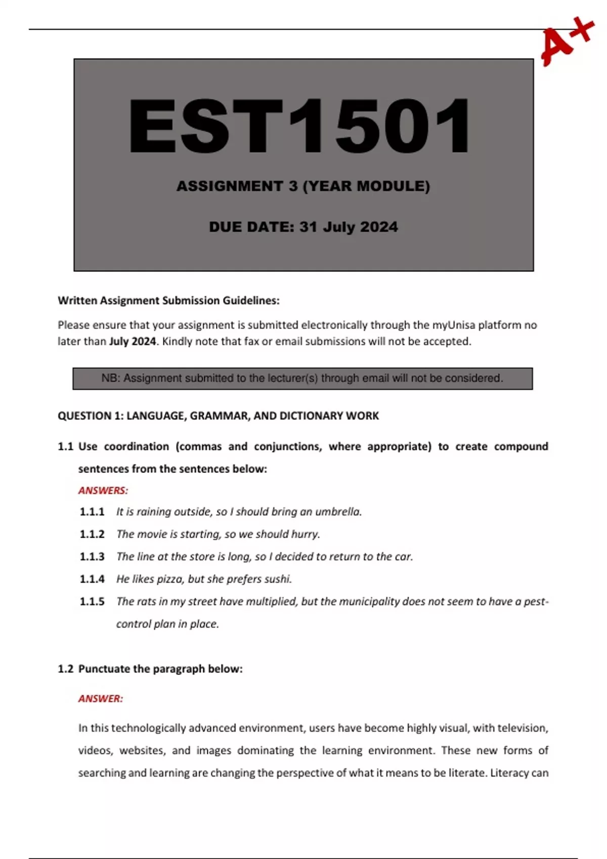 Please ensure that your assignment is submitted electronically through the myUnisa platform no
