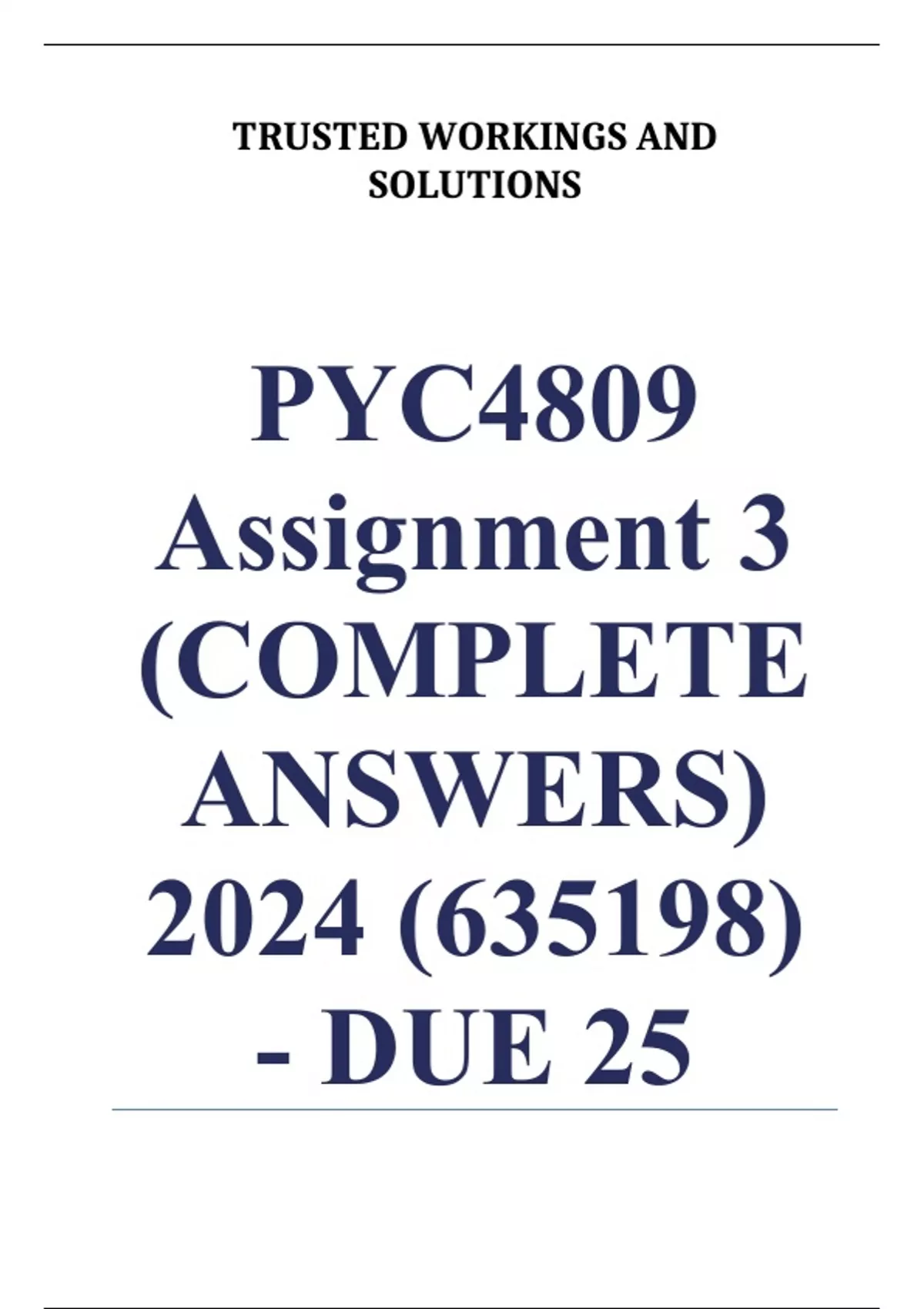 PYC4809 Assignment 3 (COMPLETE ANSWERS) 2024 (635198) - DUE 25 September 2024 ; 100% TRUSTED Complete, trusted solutions and explanations