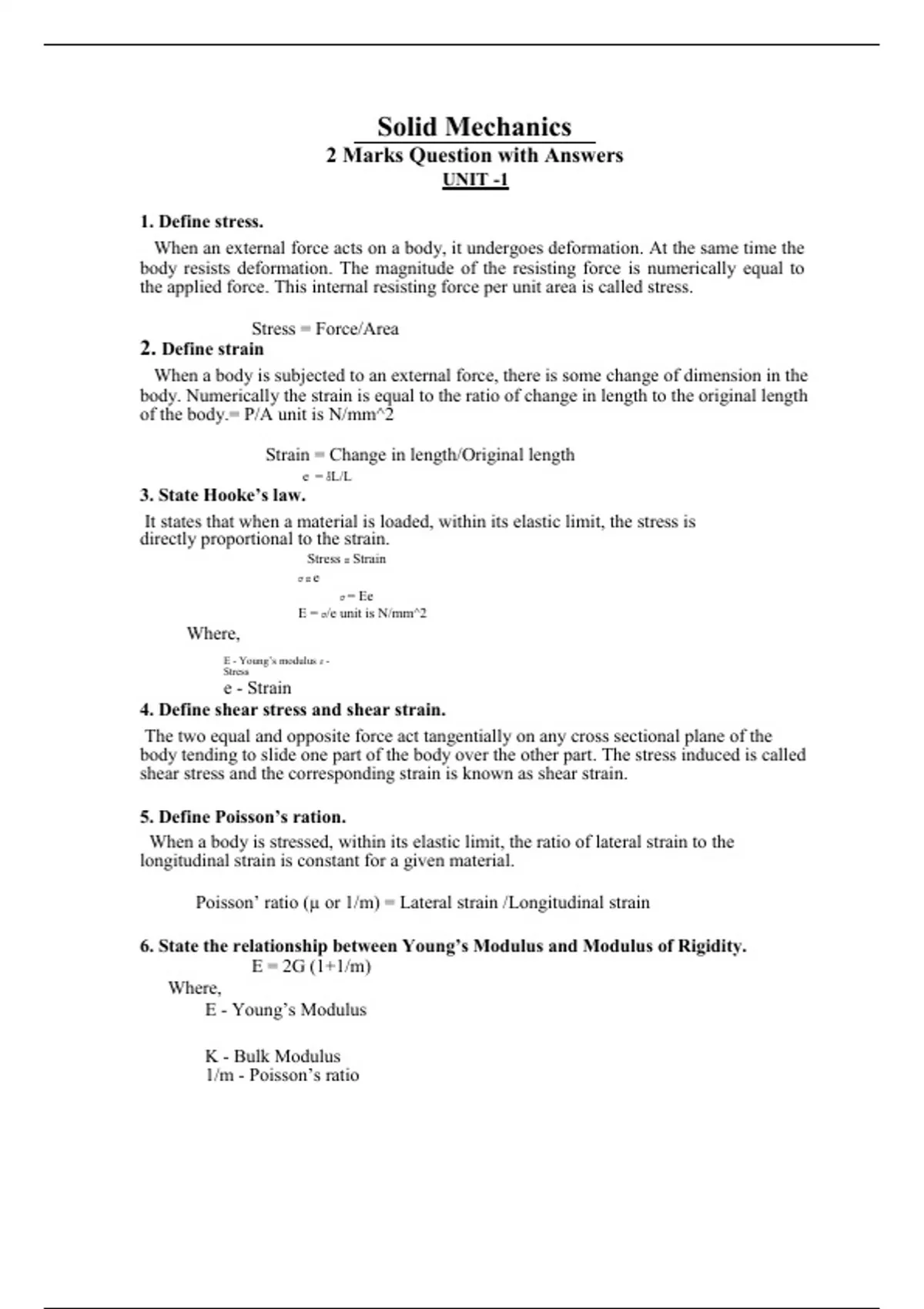 15. Define – Young’s modulus