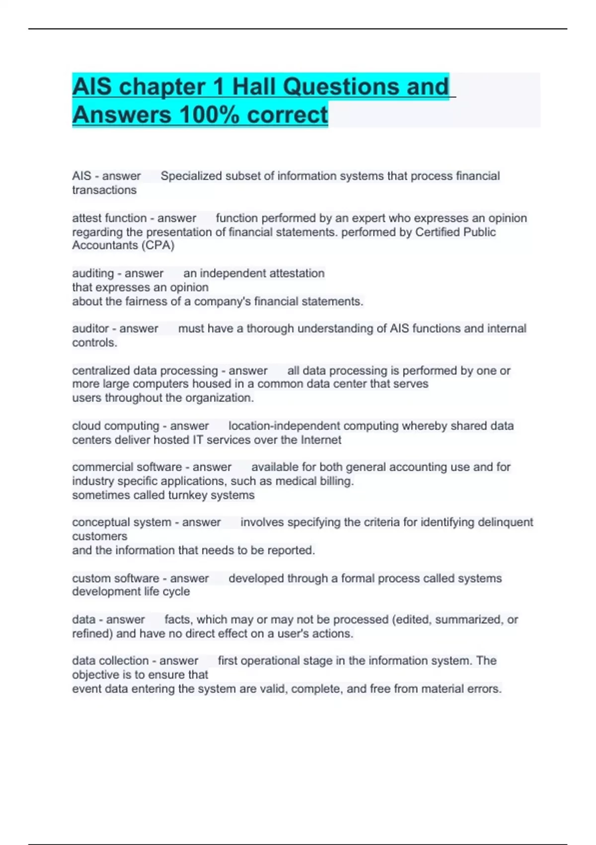 auditor - answer must have a thorough understanding of AIS functions and internal