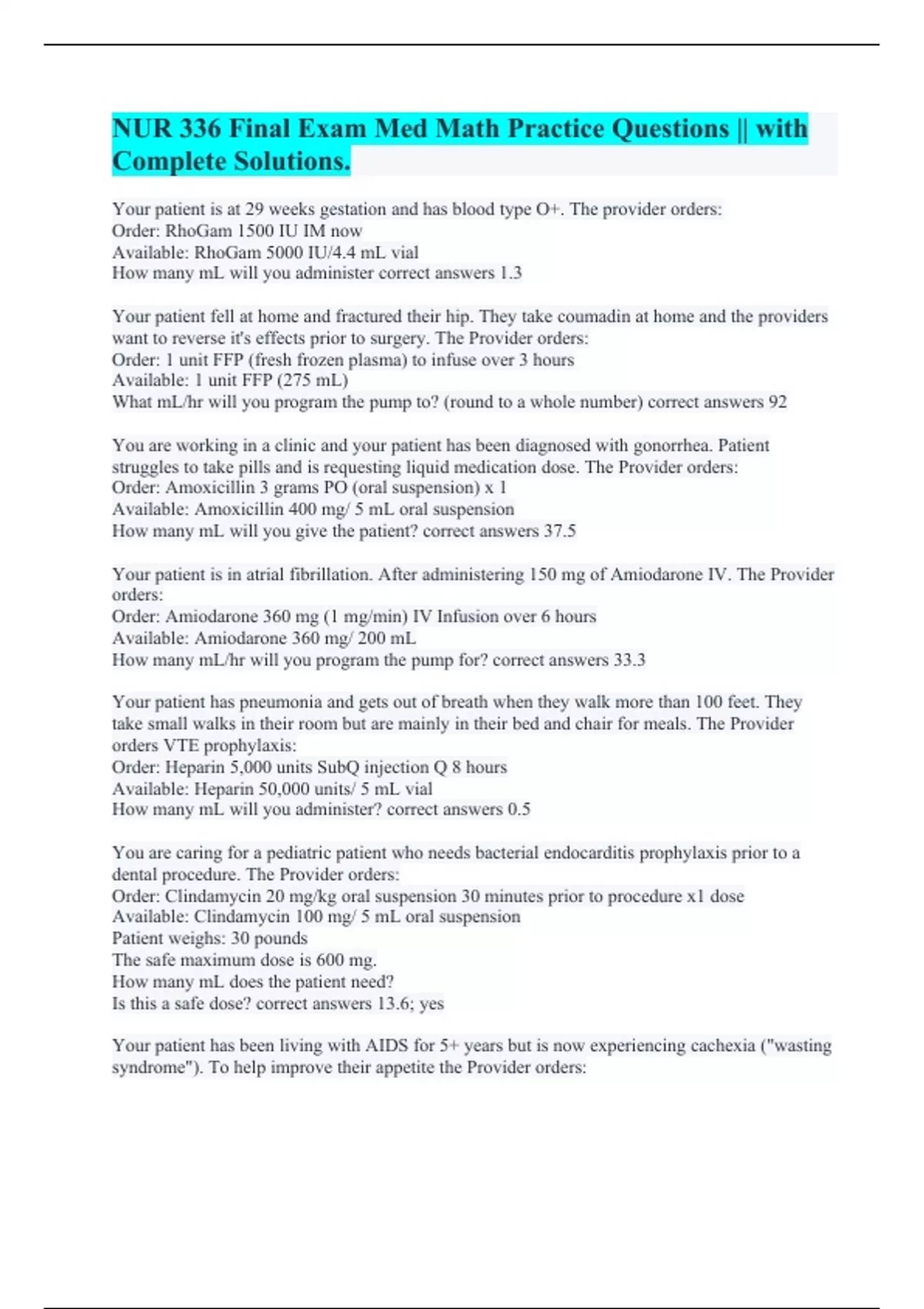 How many mL will you give the patient? correct answers 37.5
