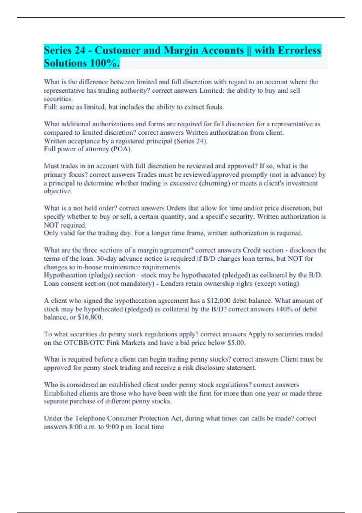 What is required before a client can begin trading penny stocks? correct answers Client must be