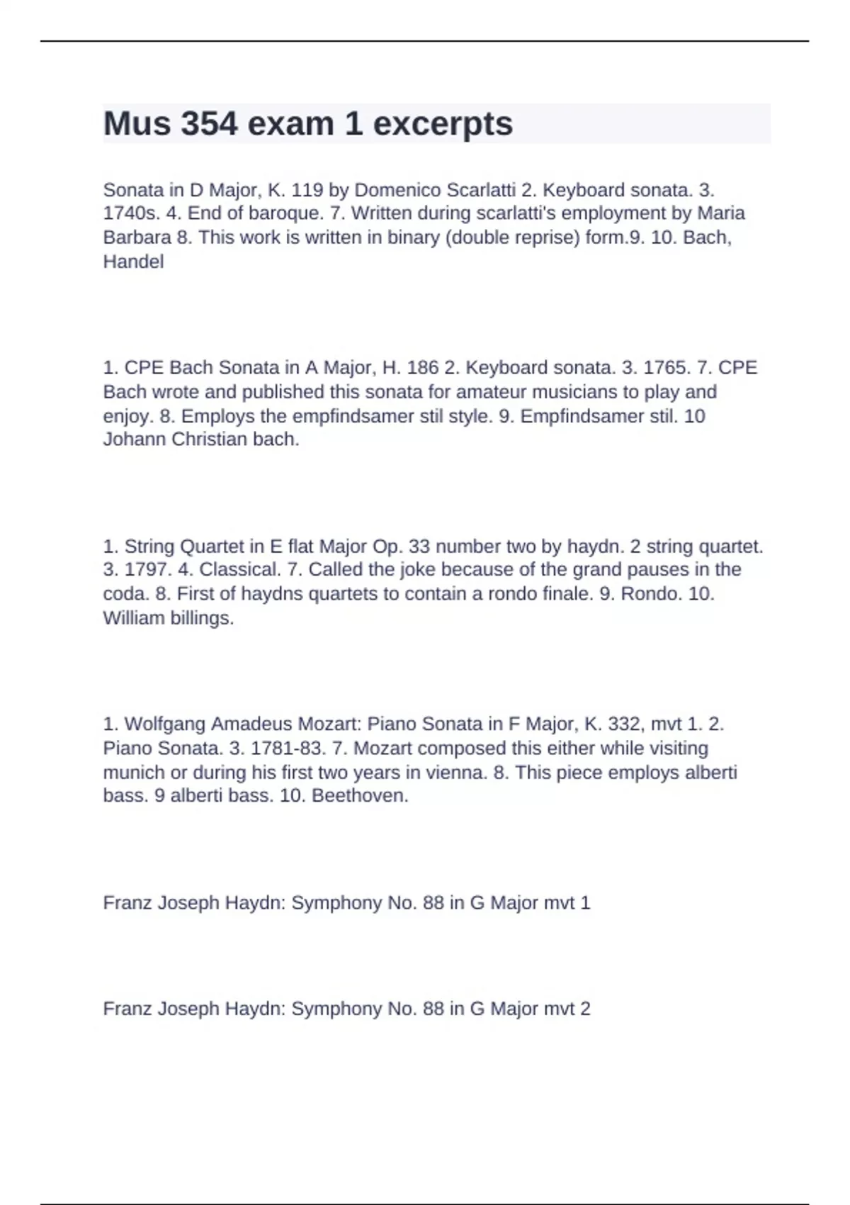 enjoy. 8. Employs the empfindsamer stil style. 9. Empfindsamer stil. 10