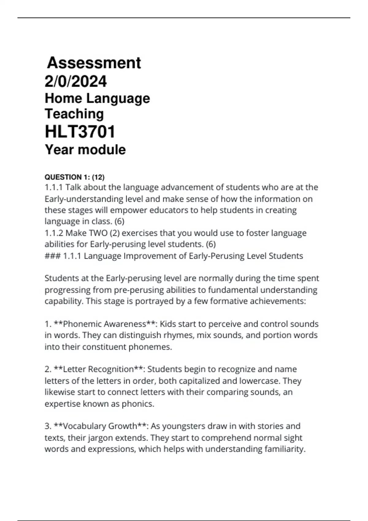 Exam of 13 pages for the course HLT3701 at Unisa (Assessment 2 HLT)