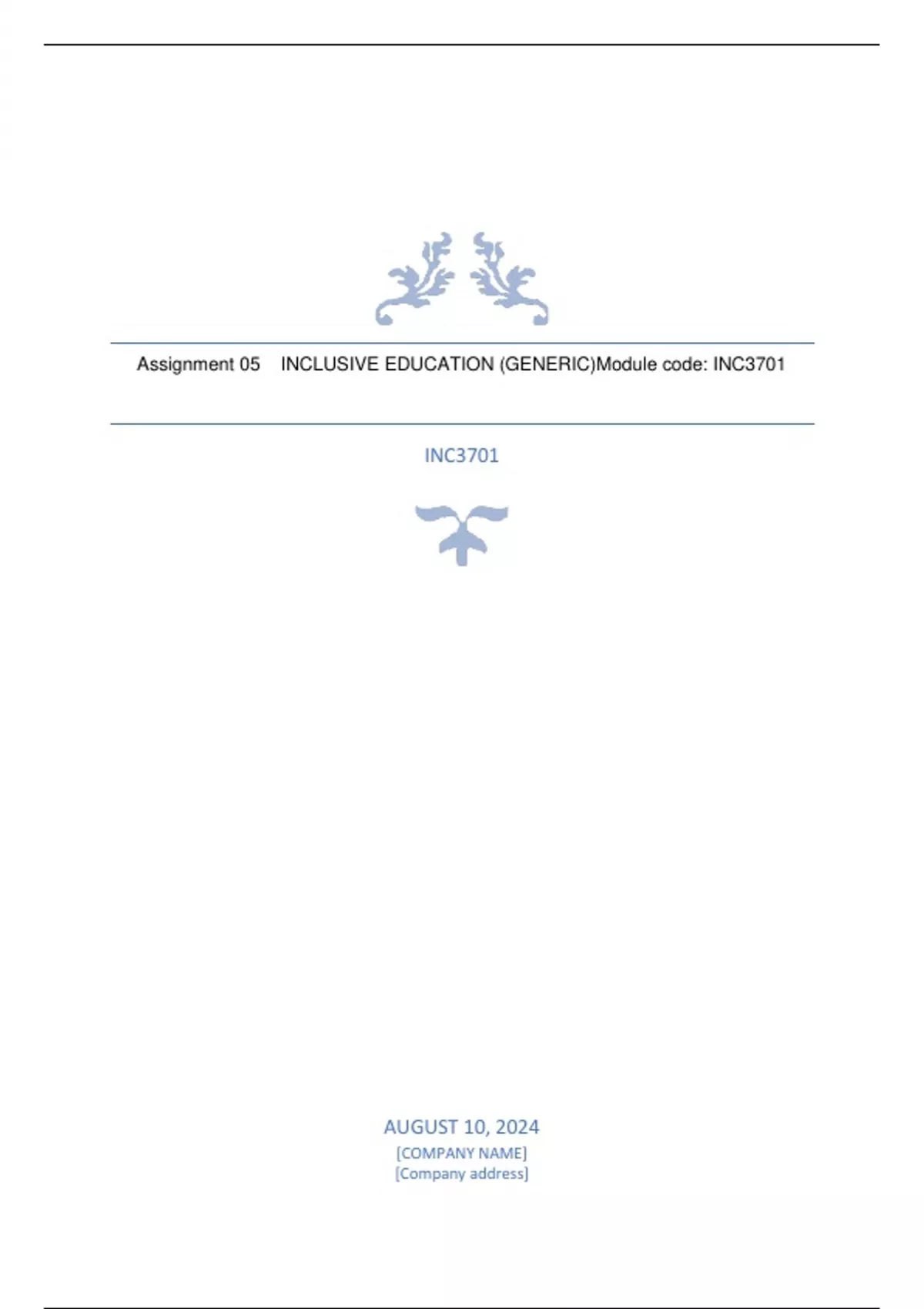 Assignment 05 INCLUSIVE EDUCATION (GENERIC)Module code: INC3701