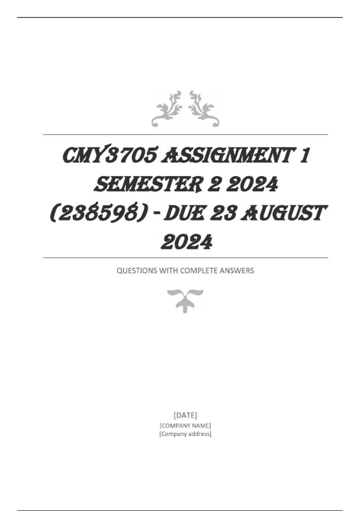 CMY3705 Assignment 1 Semester 2 2024 (238598) - DUE 23 August 2024 QUESTIONS WITH COMPLETE ANSWERS