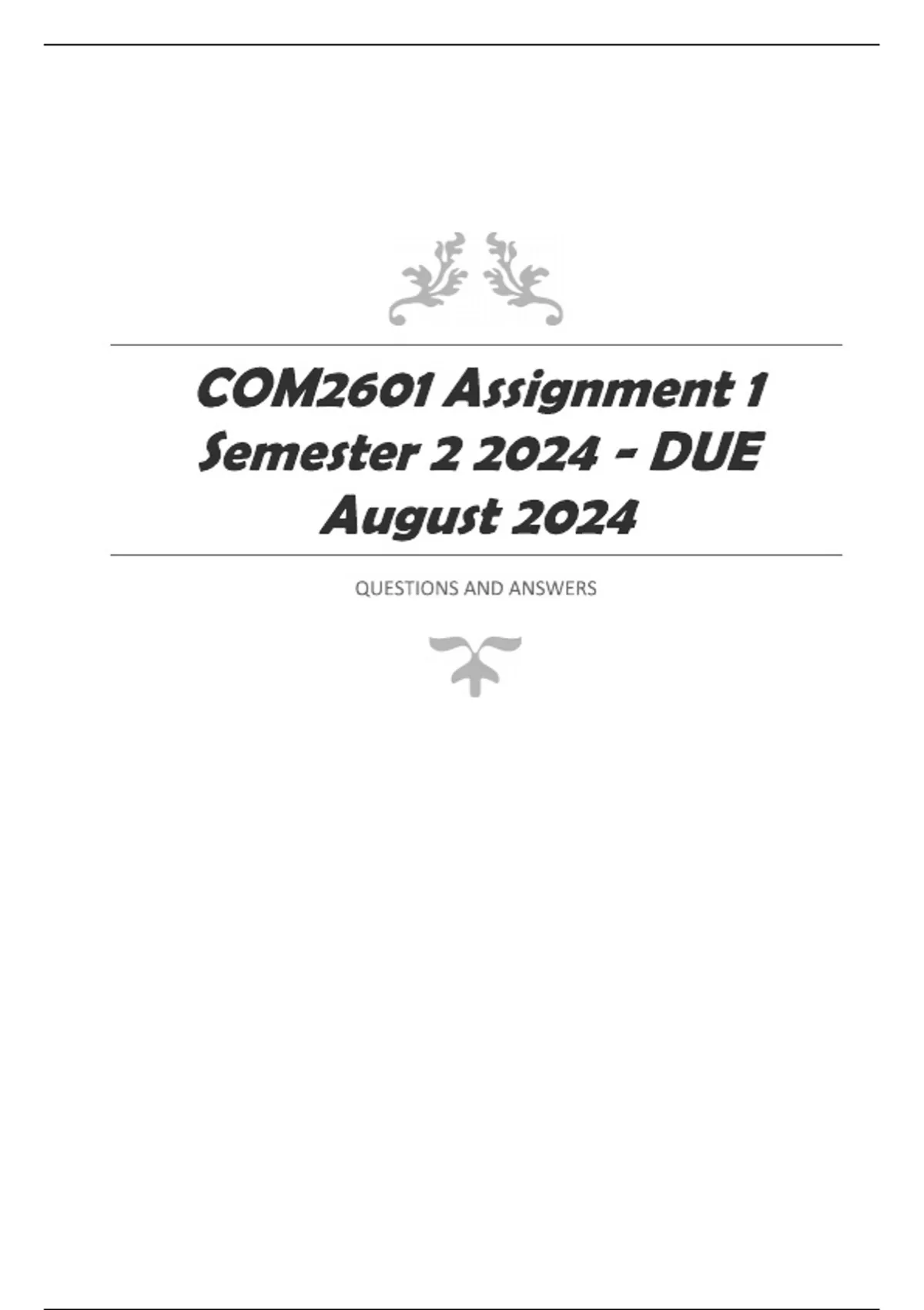 UNISA ASSIGNMENTS AUGUST / SEPTEMBER 2024 Q&A solutions