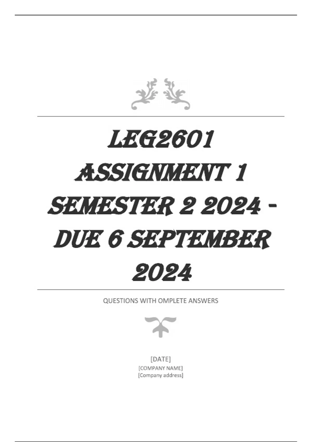 LEG2601 Assignment 1 Semester 2 2024 - DUE 6 September 2024 QUESTIONS WITH OMPLETE ANSWERS