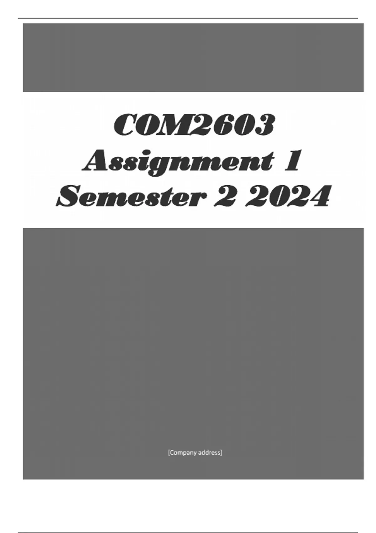 COM2603 Assignment 1 (COMPLETE ANSWERS) Semester % satisfaction guarantee - Course Intercultural Development and Health Communication - Book