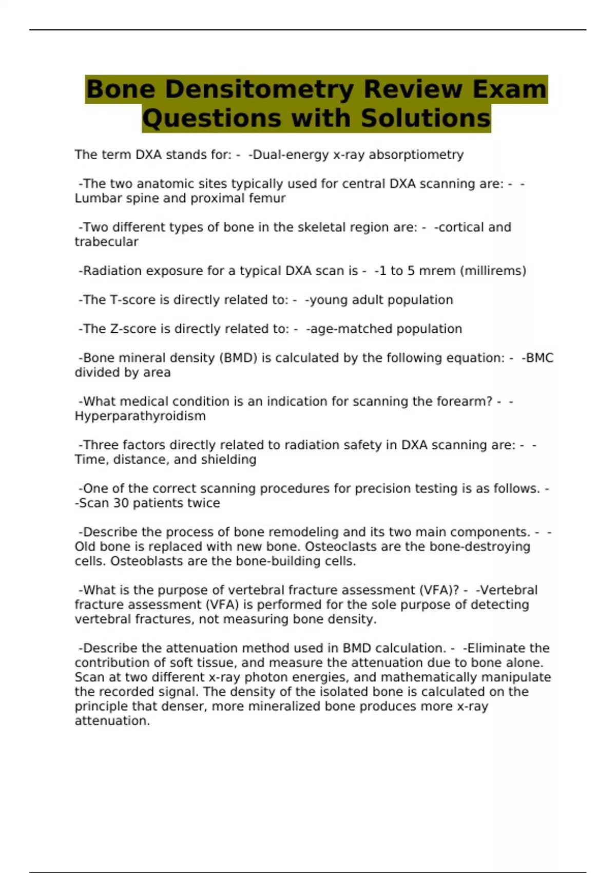 The term DXA stands for: - -Dual-energy x-ray absorptiometry