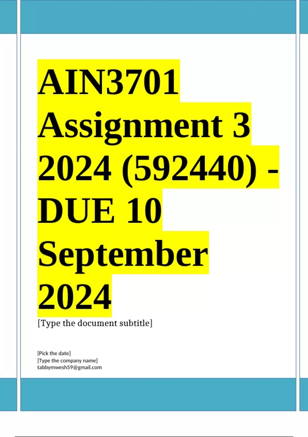 AIN3701 Assignment 3 Full Solutions 2024 (592440) - DUE 10 September 2024 ;100 % TRUSTED workings, Expert Solved, Explanations and Solutions.
