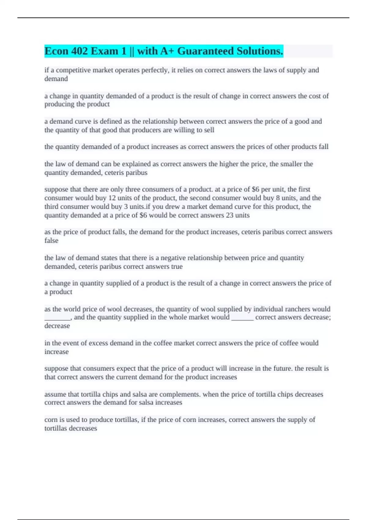 a change in quantity supplied of a product is the result of a change in correct answers the price of