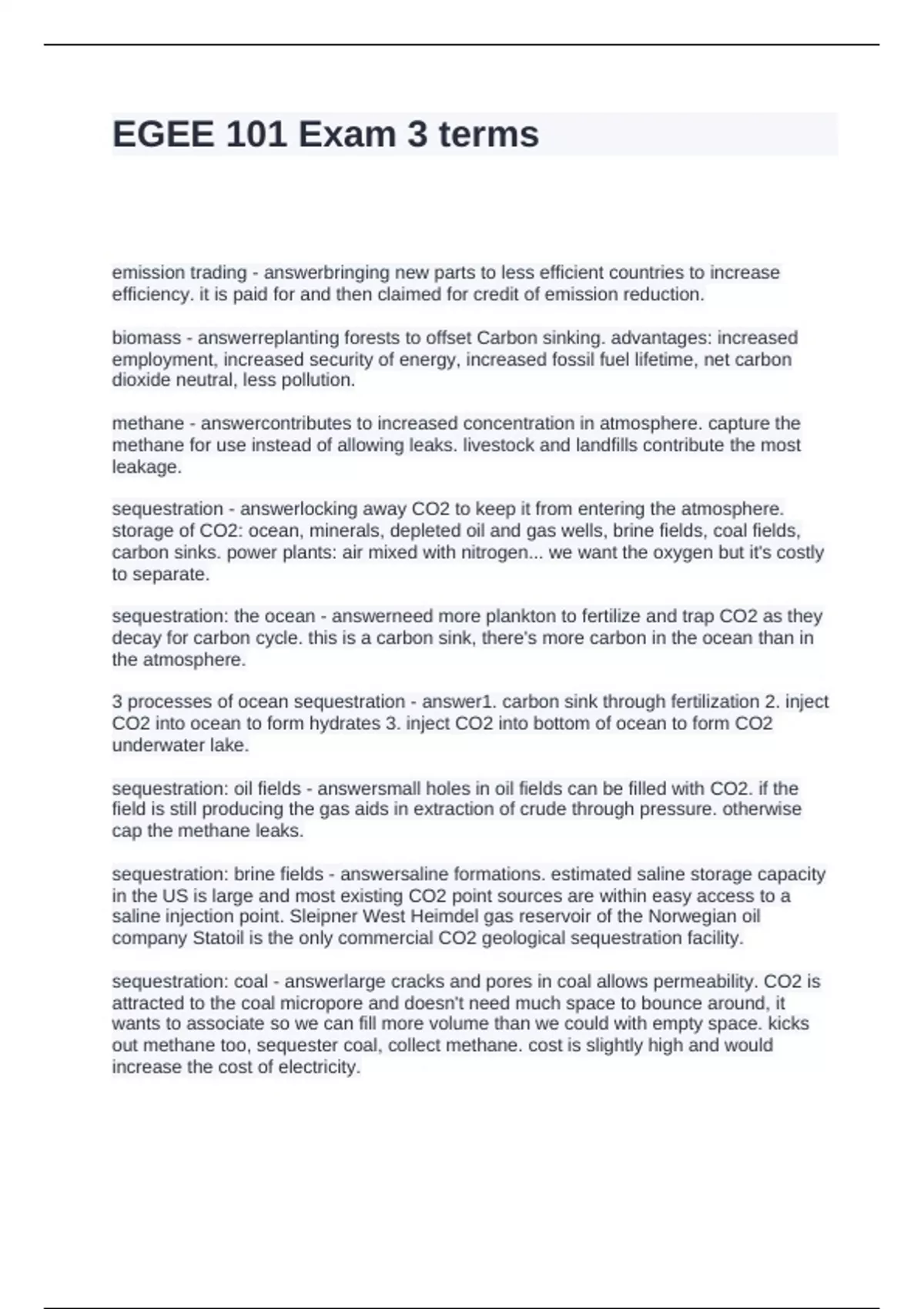 EGEE 101 Exam 3 terms
