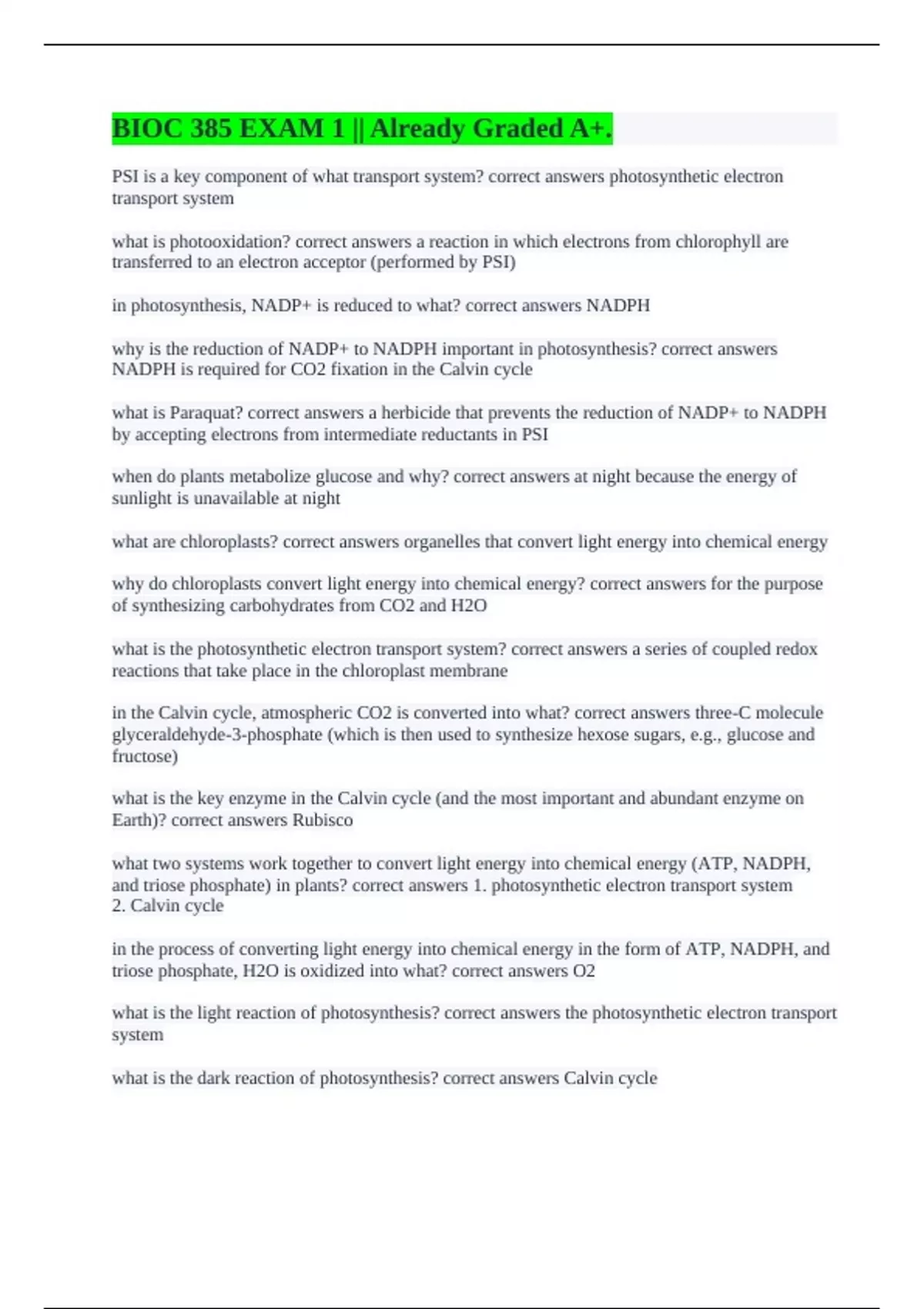 in photosynthesis, NADP+ is reduced to what? correct answers NADPH