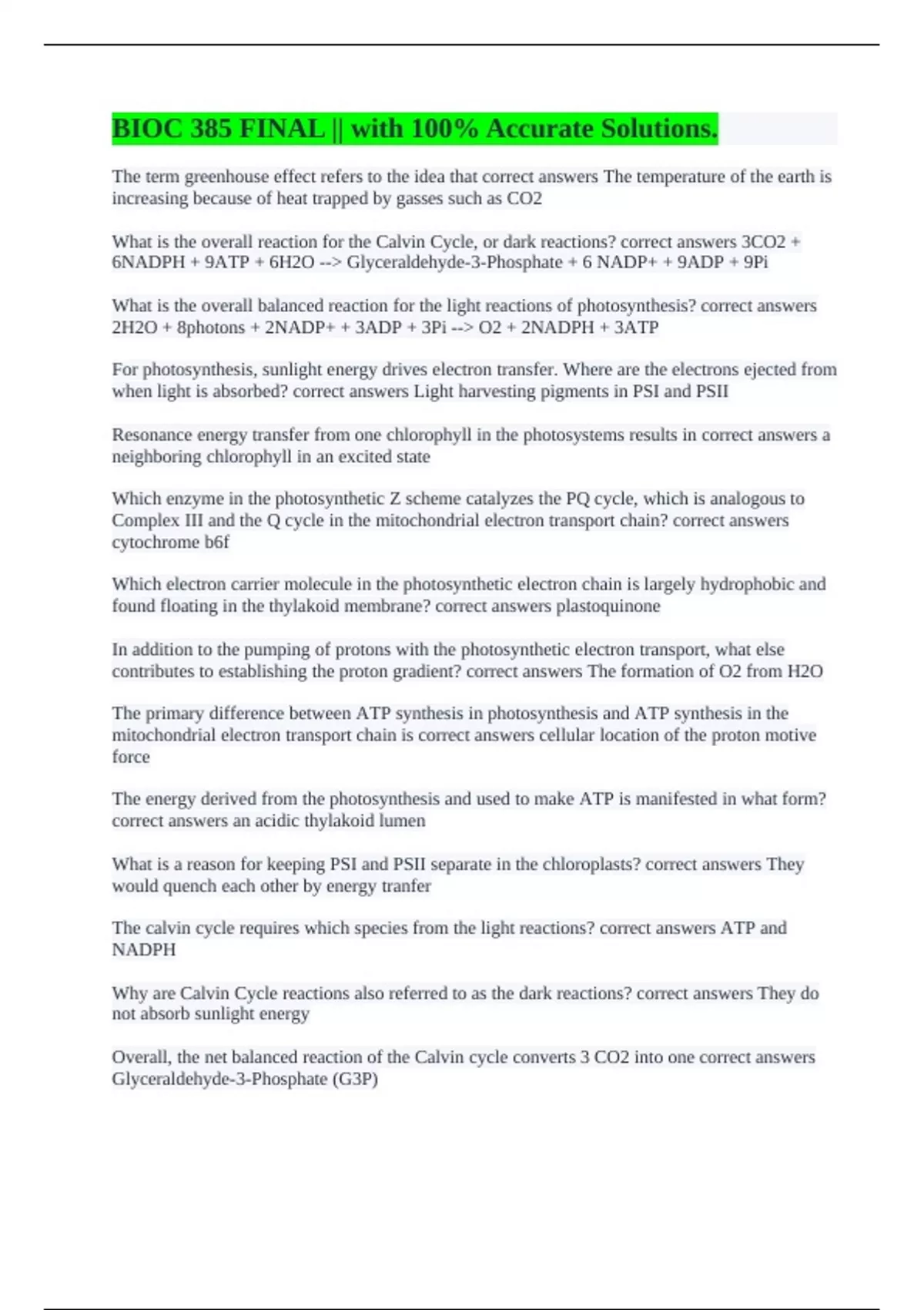BIOC 385 FINAL || with 100% Accurate Solutions.