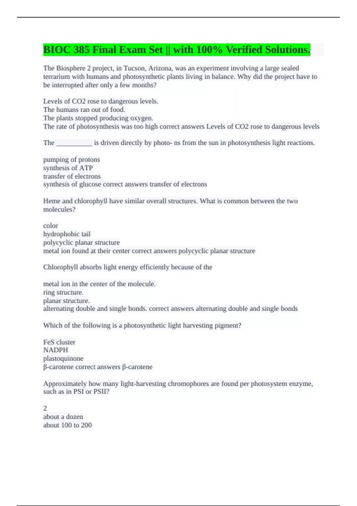 β-carotene correct answers β-carotene
