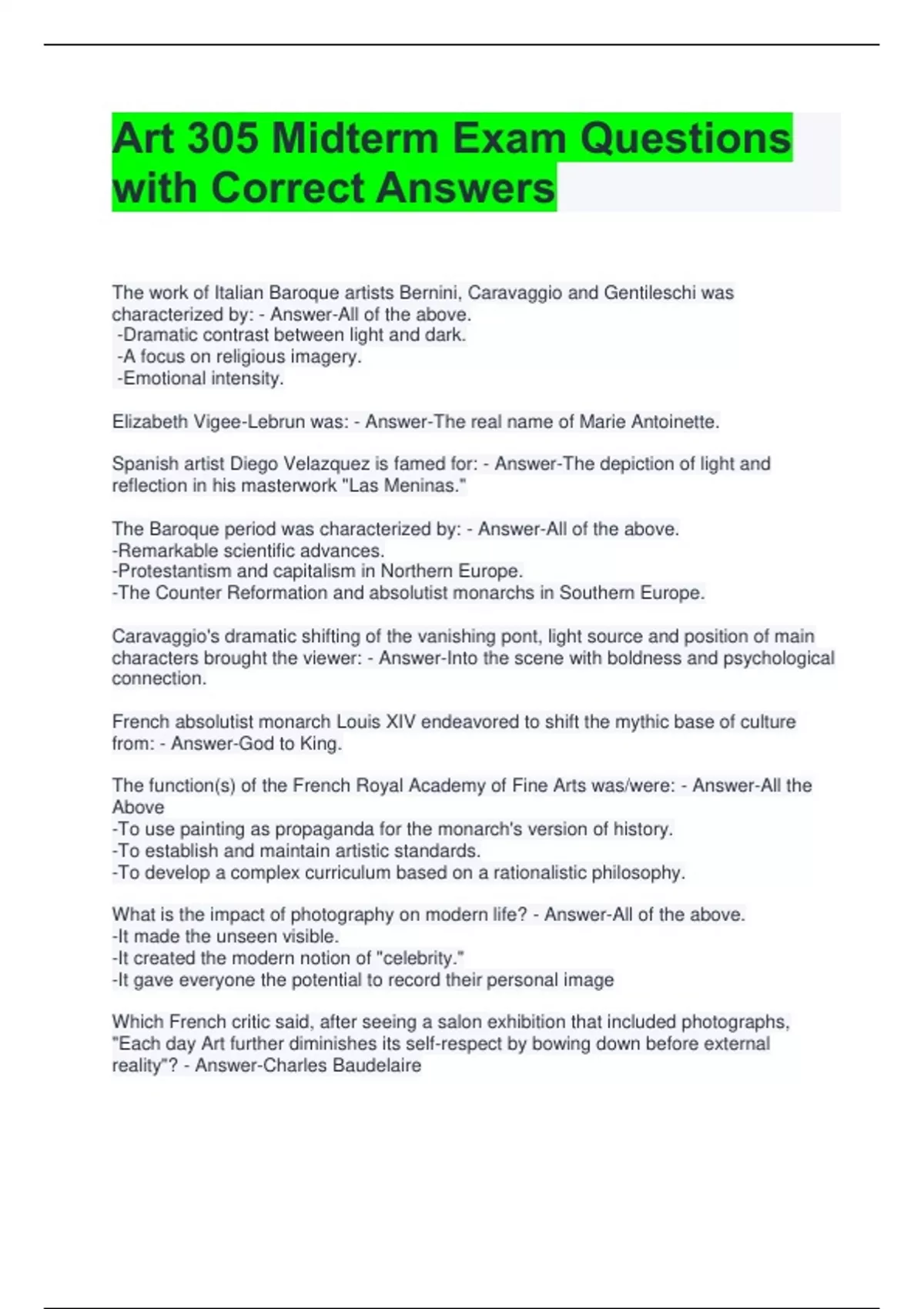 with Correct Answers