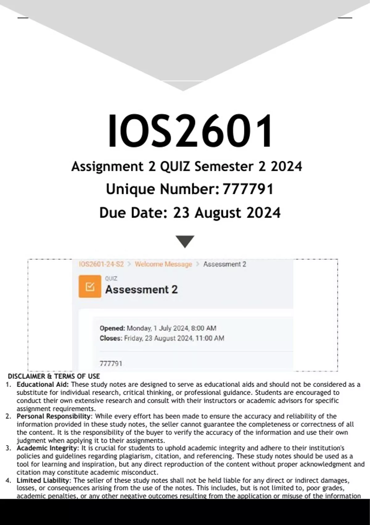 4. Limited Liability: The seller of these study notes shall not be held liable for any direct or indirect damages,