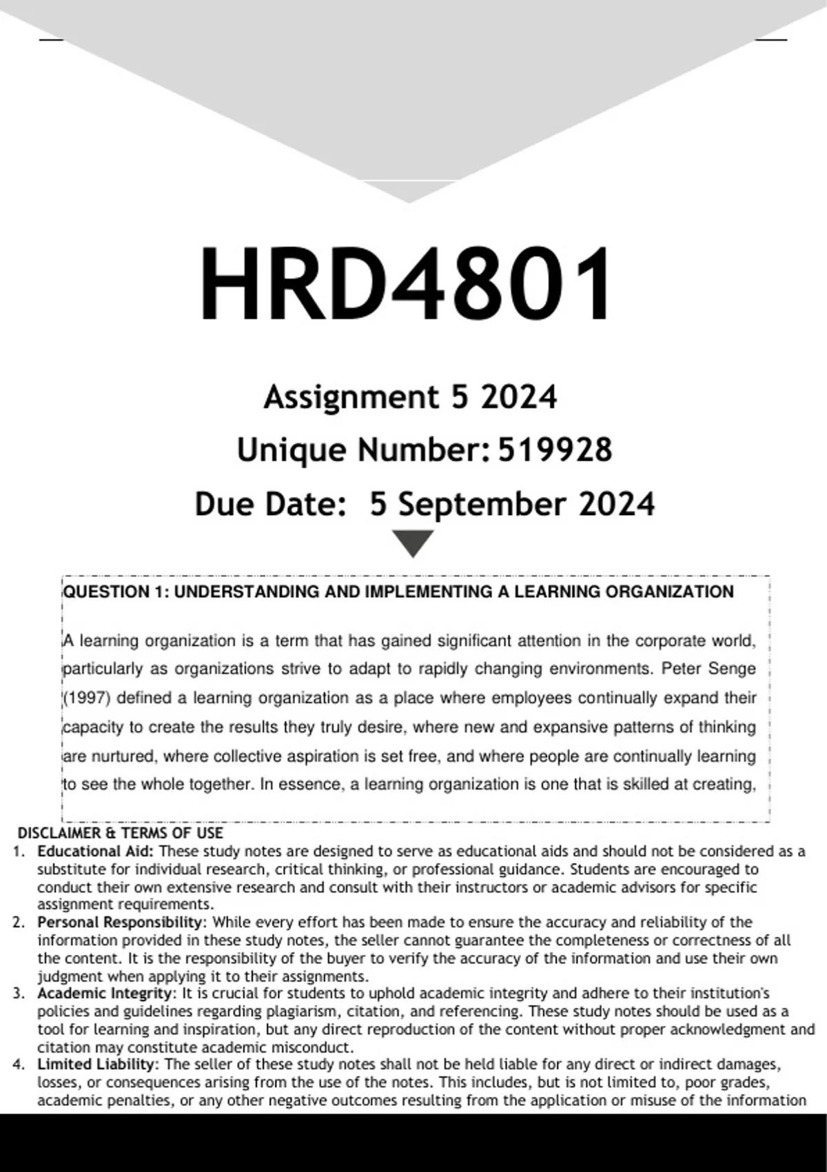 Well-structured HRD4801 Assignment 5 (ANSWERS) 2024 - DISTINCTION GUARANTEED. (DETAILED ANSWERS - DISTINCTION GUARANTEED!)....