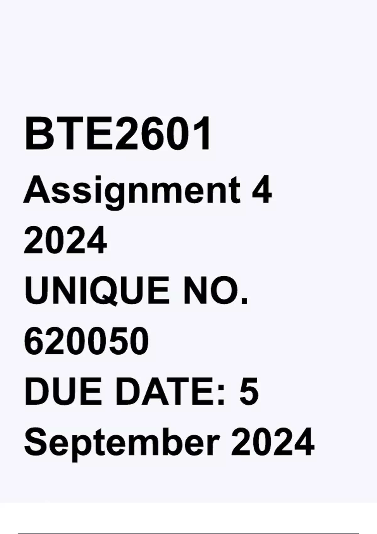 BTE2601 Assignment 4 2024 UNIQUE NO. 620050 DUE DATE_ 5 September 2024