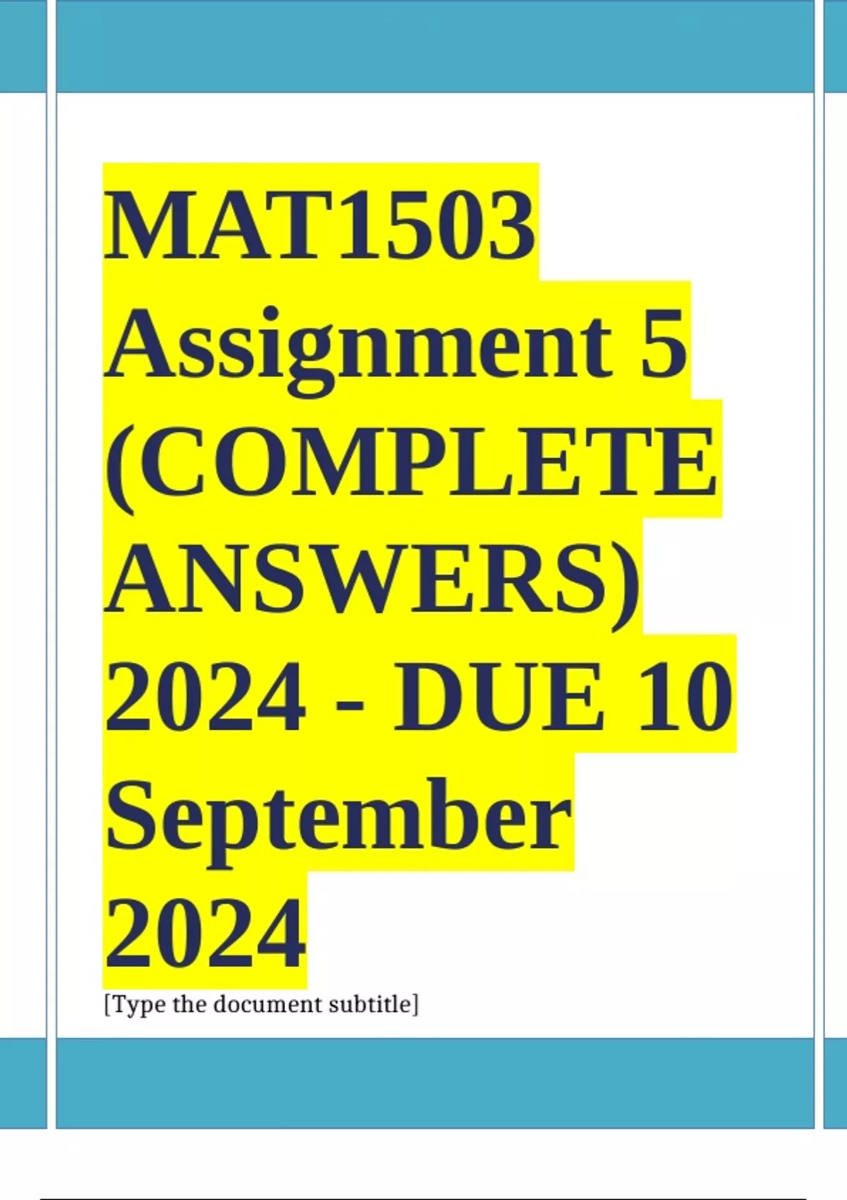 MAT1503 Assignment 5 (COMPLETE ANSWERS) 2024 - DUE 10 September 2024 ; 100% TRUSTED Complete, trusted solutions and explanations. Ensure your success with us ....