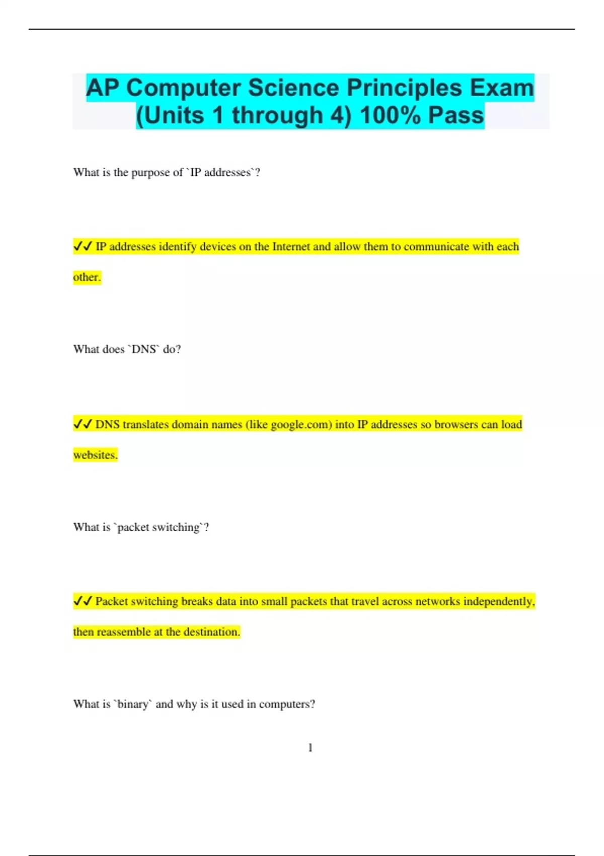 (Units 1 through 4) 100% Pass