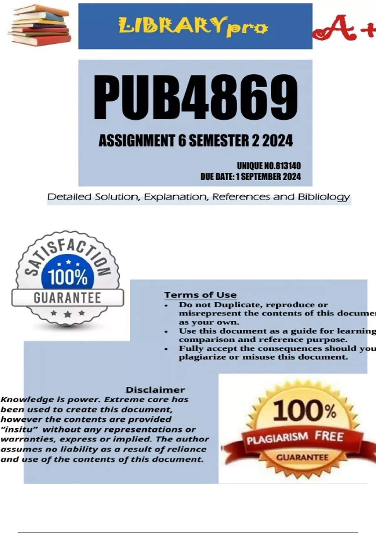 PUB4869 Assignment 6 (COMPLETE ANSWERS) Semester 2 2024 (813140) - DUE 1 September 2024