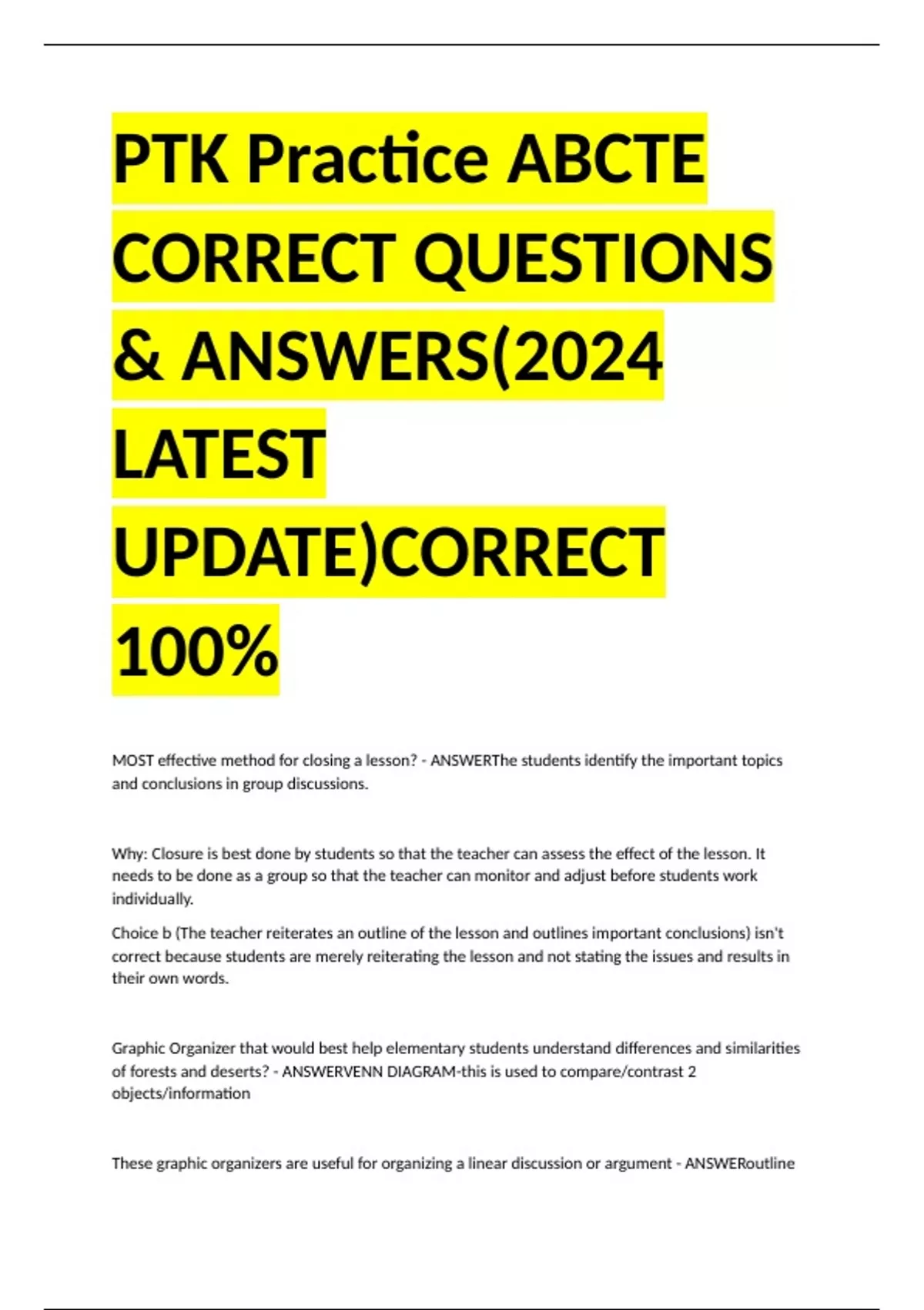 PTK Practice ABCTE CORRECT QUESTIONS & ANSWERS(2024 LATEST UPDATE)CORRECT 100%