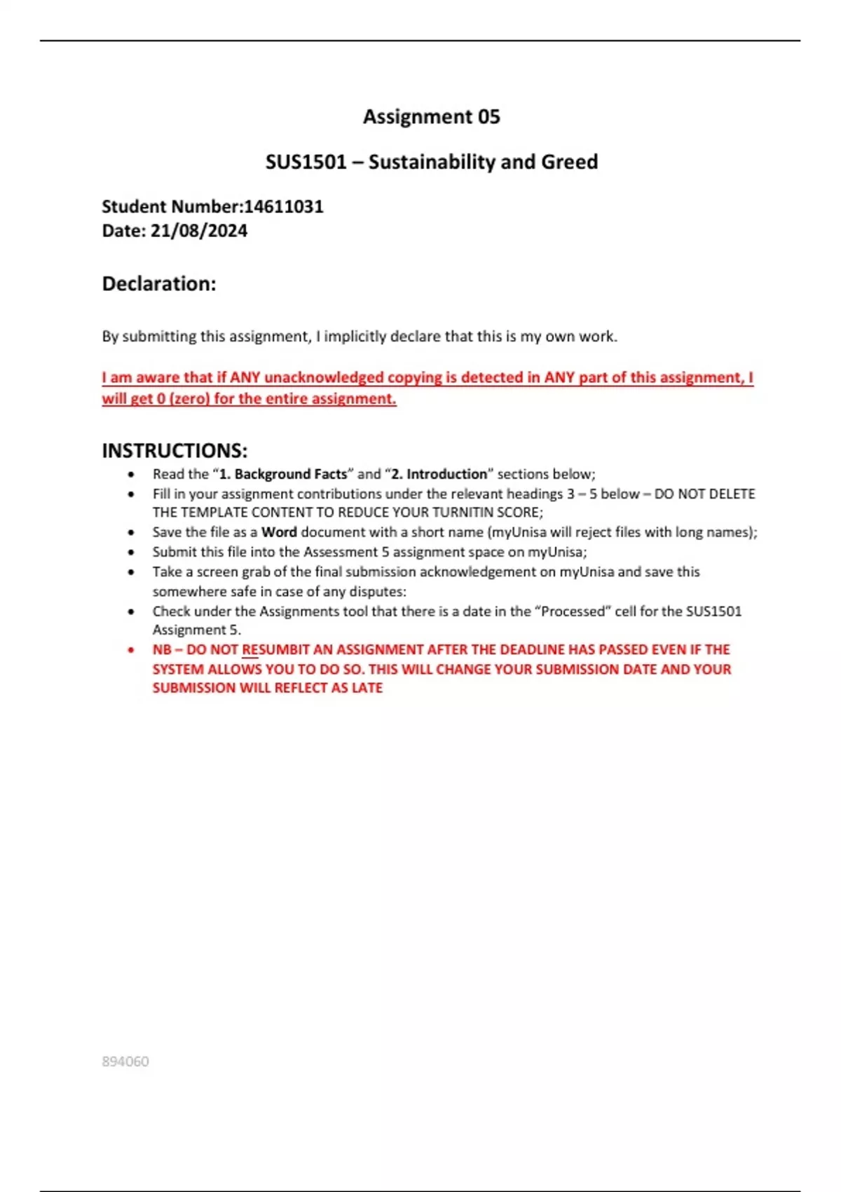• NB – DO NOT RESUMBIT AN ASSIGNMENT AFTER THE DEADLINE HAS PASSED EVEN IF THE