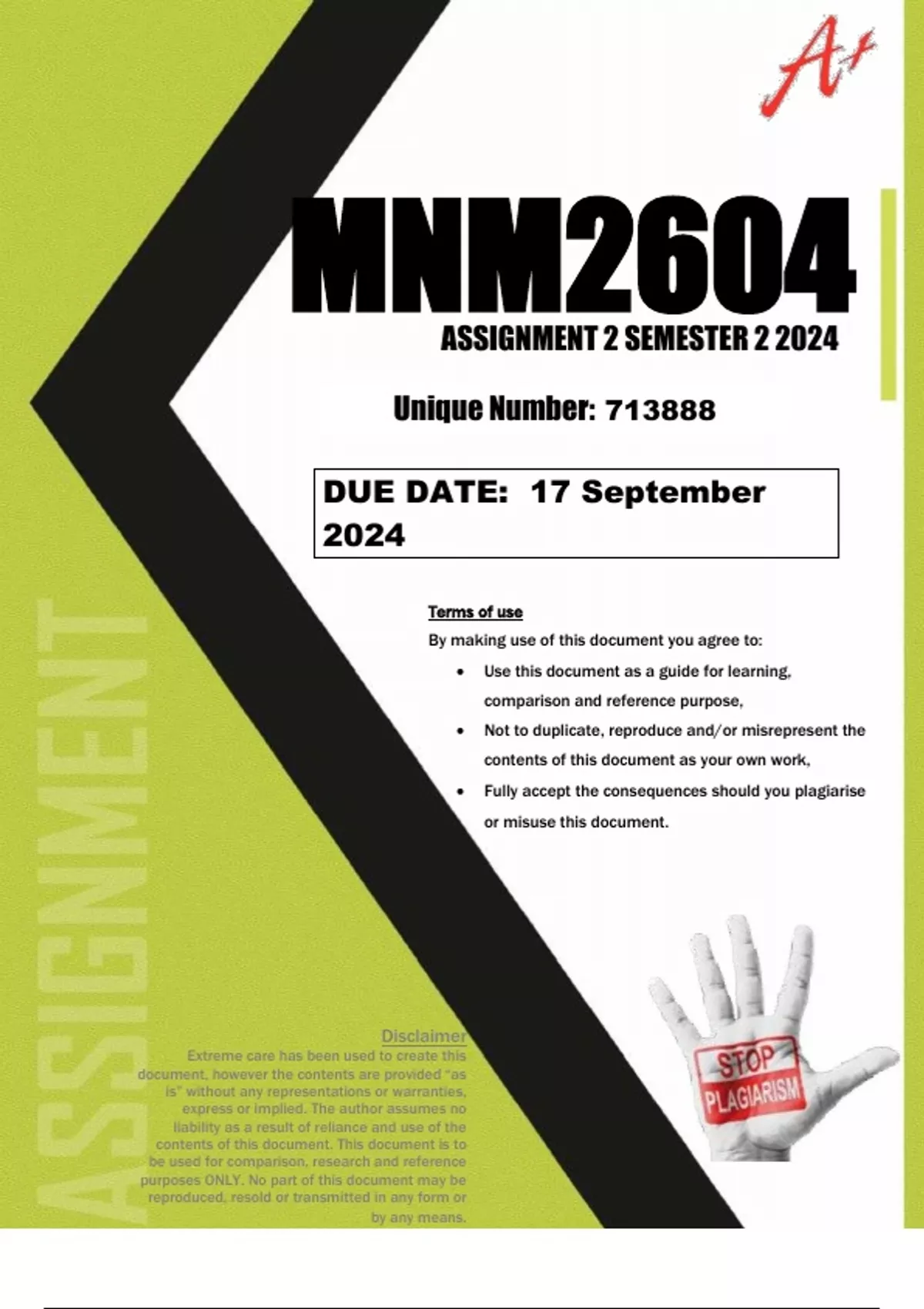 MNM2604 ASSIGNMENT 2 SEMESTER 2 2024