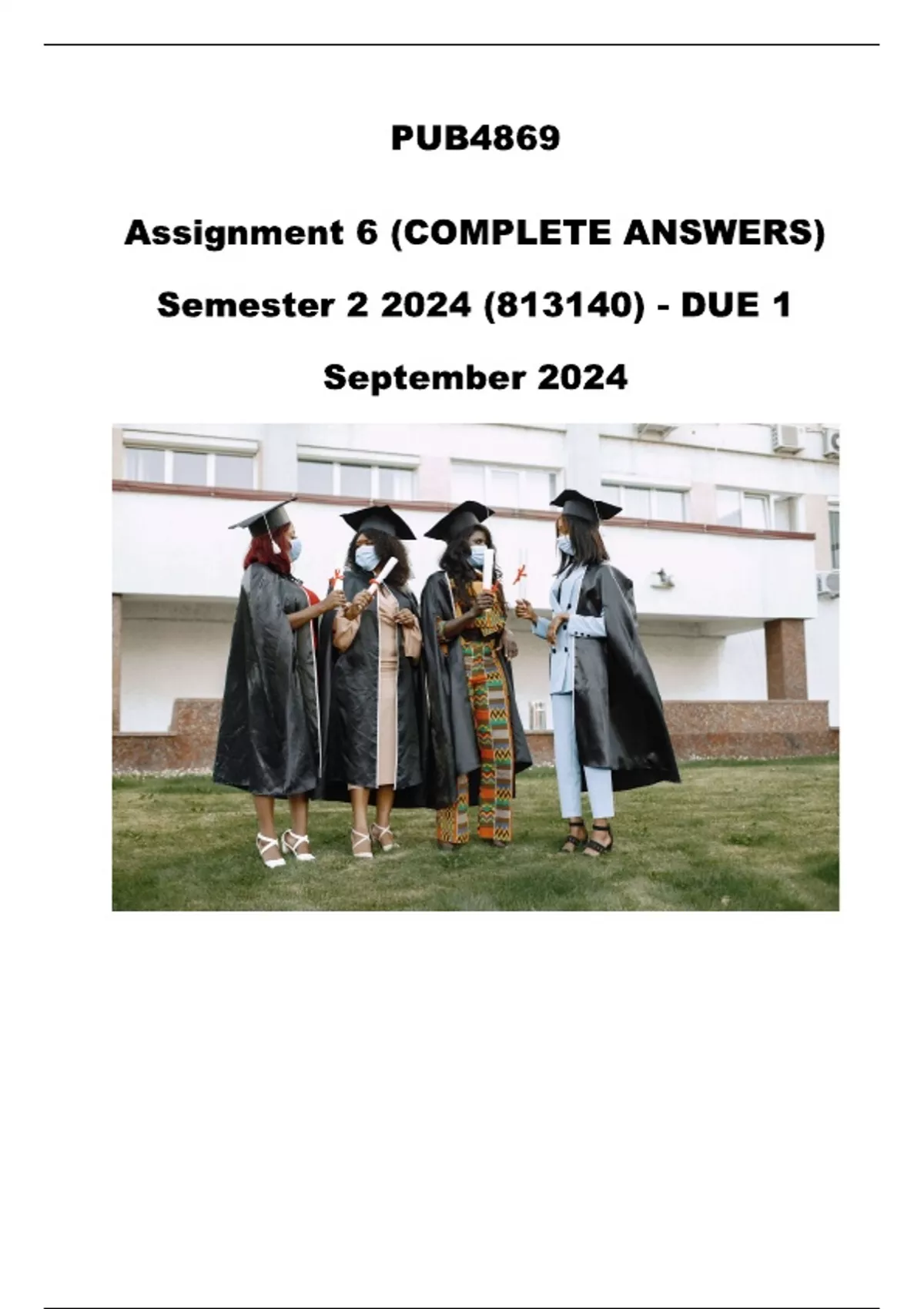 PUB4869 Assignment 6 Full Solutions Semester 2 2024 (813140) - DUE 1 September 2024 ;100 % TRUSTED workings, Expert Solved, Explanations and Solutions.