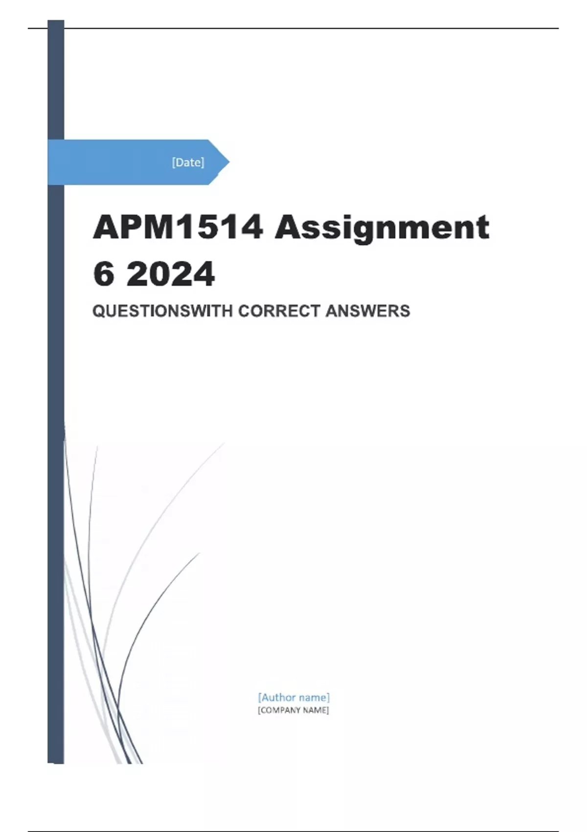 APM1514 Assignment 6 (COMPLETE ANSWERS) 2024