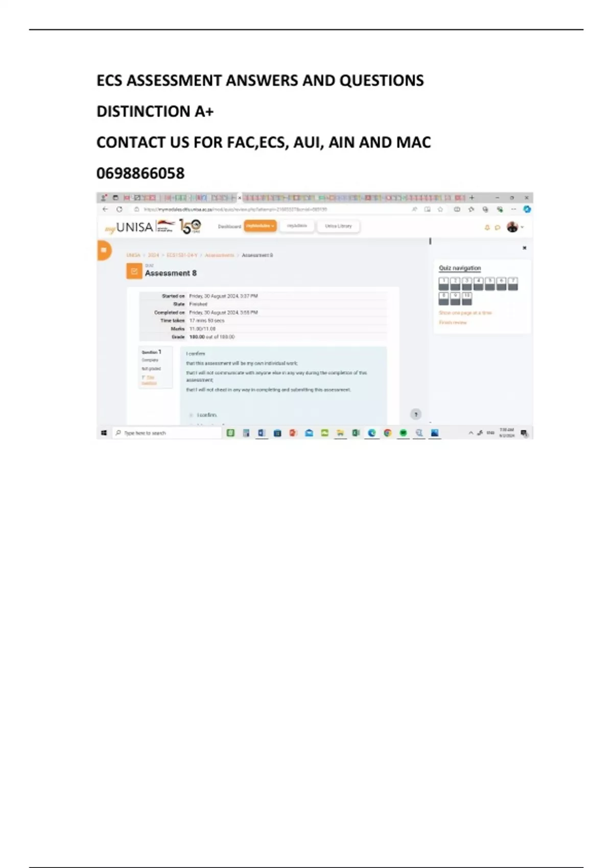 ECS ASSESSMENT ANSWERS AND QUESTIONS