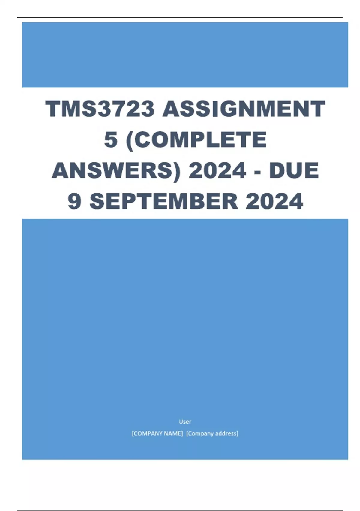 TMS3723 Assignment 5 (COMPLETE ANSWERS) 2024 - DUE 9 September 2024 ; 100% TRUSTED Complete, trusted solutions and explanations.