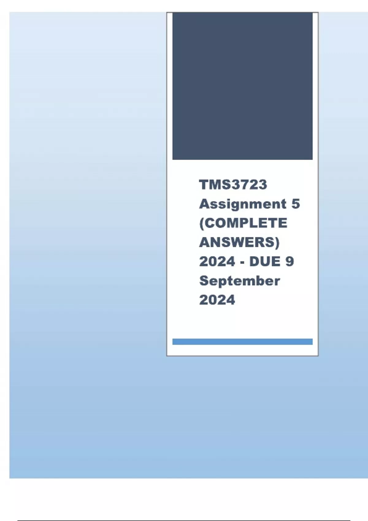 TMS3723 Assignment 5 (COMPLETE ANSWERS) 2024 - DUE 9 September 2024.