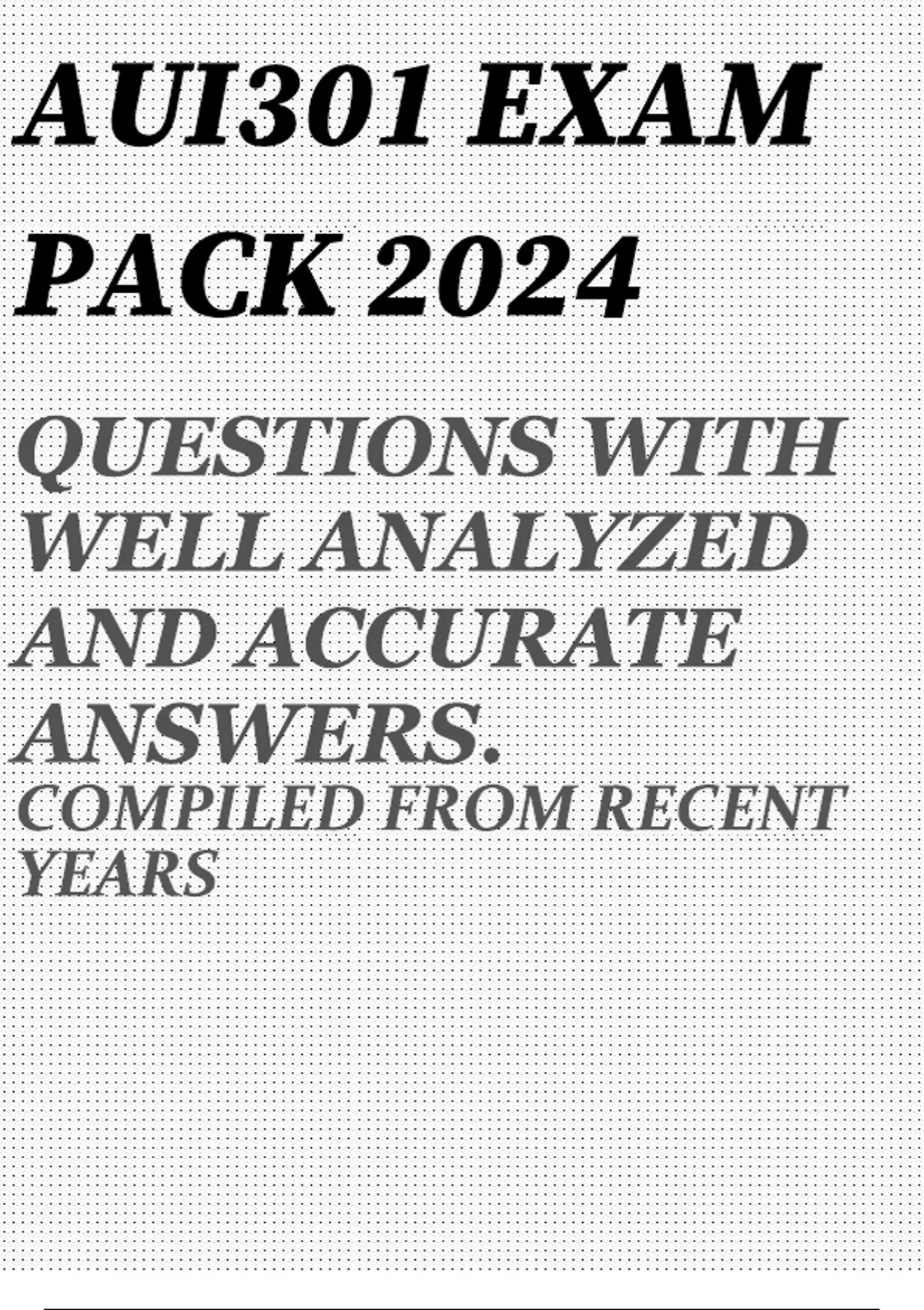 AUI301 EXAM PACK 2024 QUESTIONS WITH WELL ANALYZED AND ACCURATE ANSWERS.