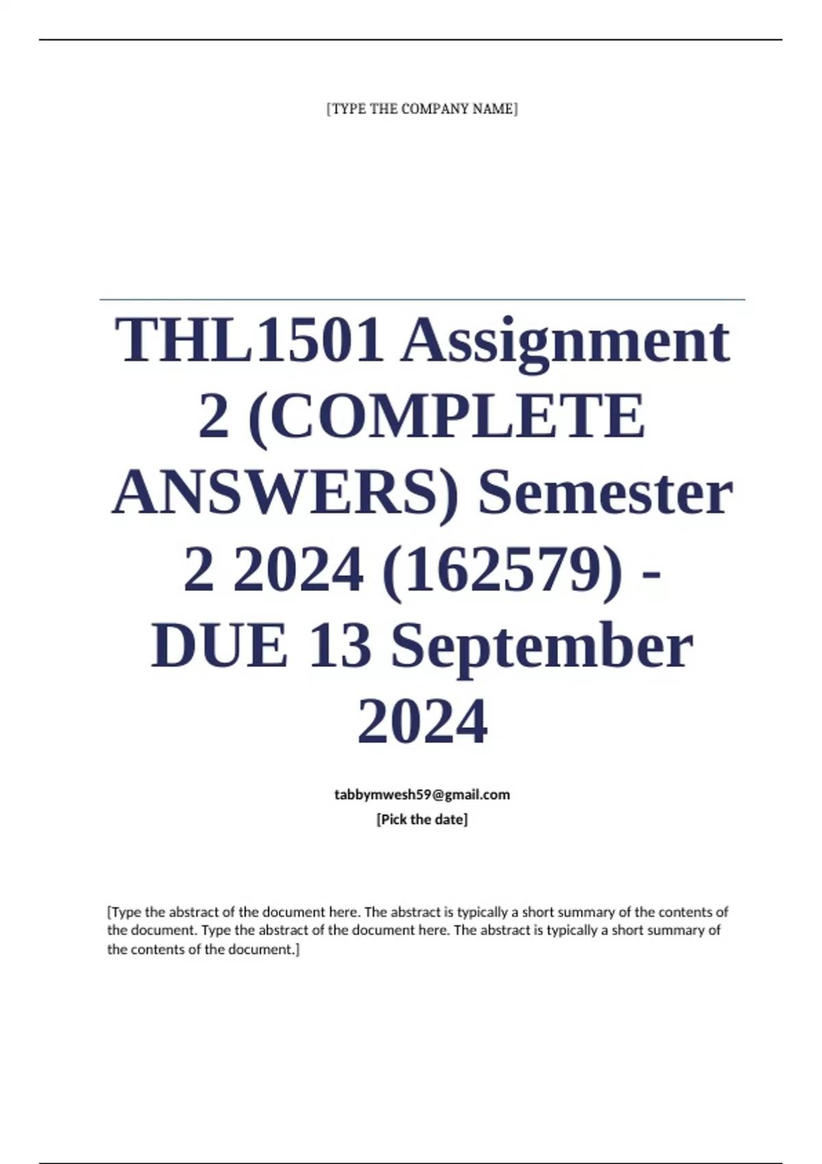 THL1501 Assignment 2 (COMPLETE ANSWERS) Semester 2 2024 (162579) - DUE 13 September 2024 ; 100% TRUSTED Complete, trusted solutions and explanations. Ensure your success with us...