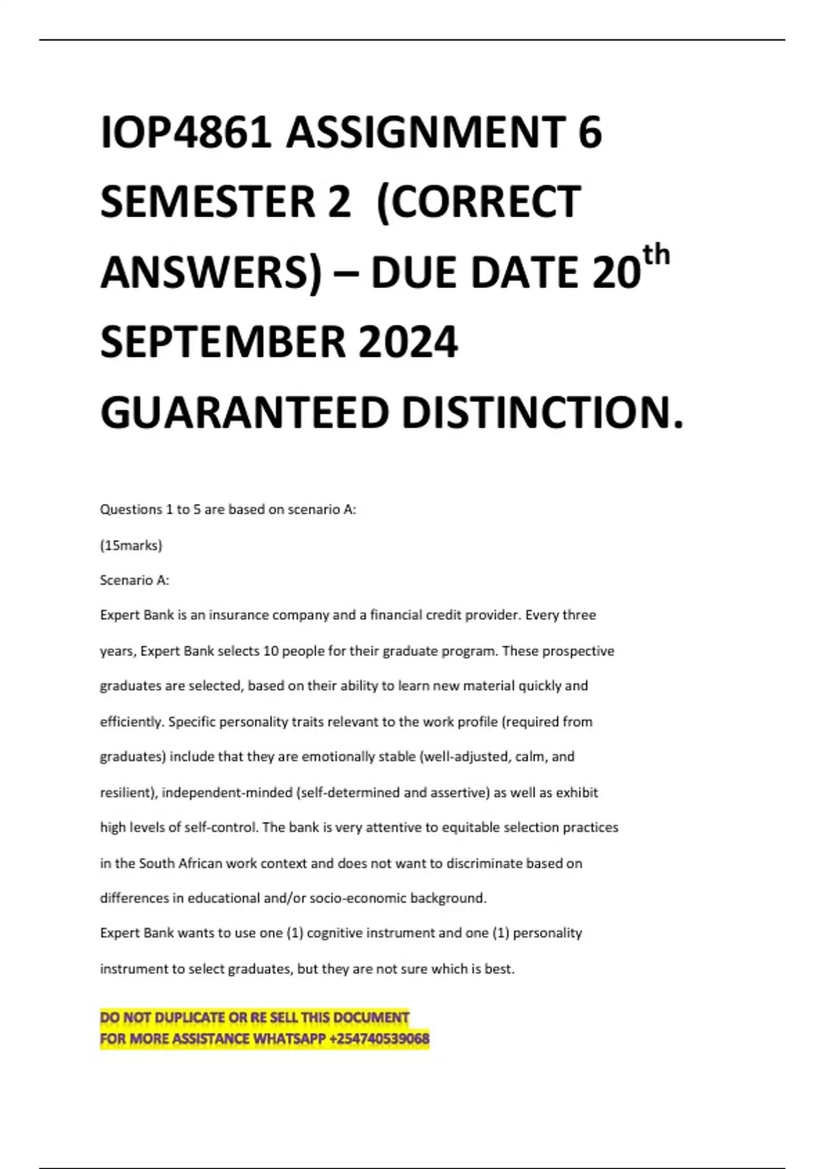 IOP4861 ASSIGNMENT 6 SEMESTER 2 (CORRECT ANSWERS) – DUE DATE 20th SEPTEMBER 2024 GUARANTEED DISTINCTION.