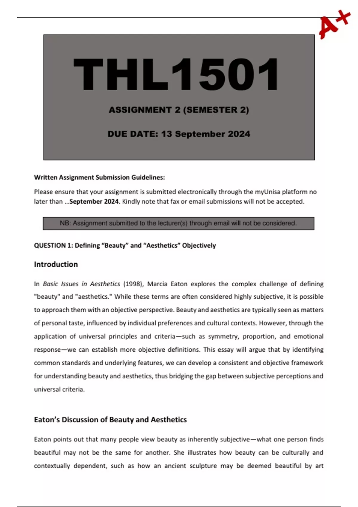 THL1501 Assignment 2 (Semester 2) 2024 - Due 13 September 2024