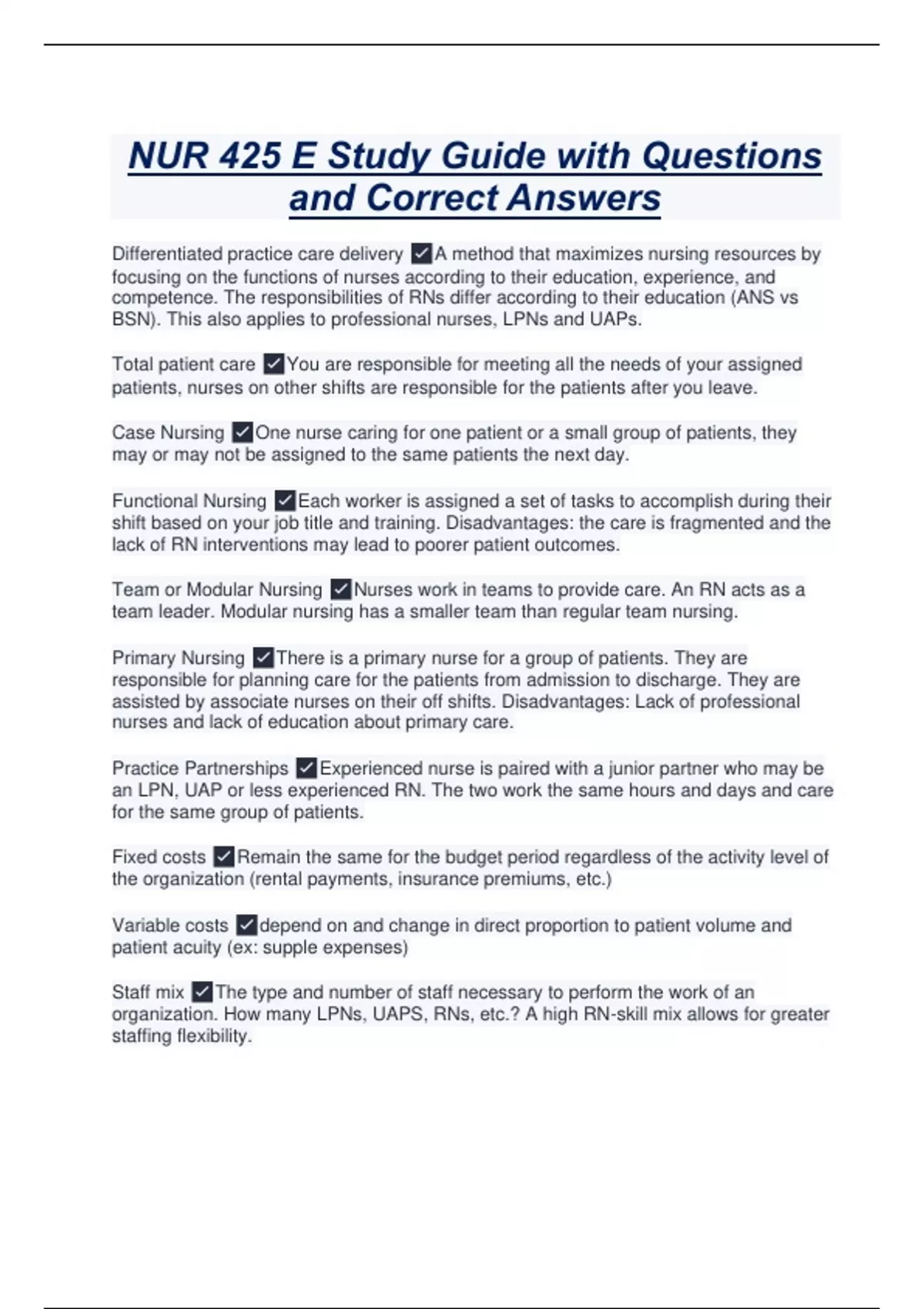 Differentiated practice care delivery ✅A method that maximizes nursing resources by