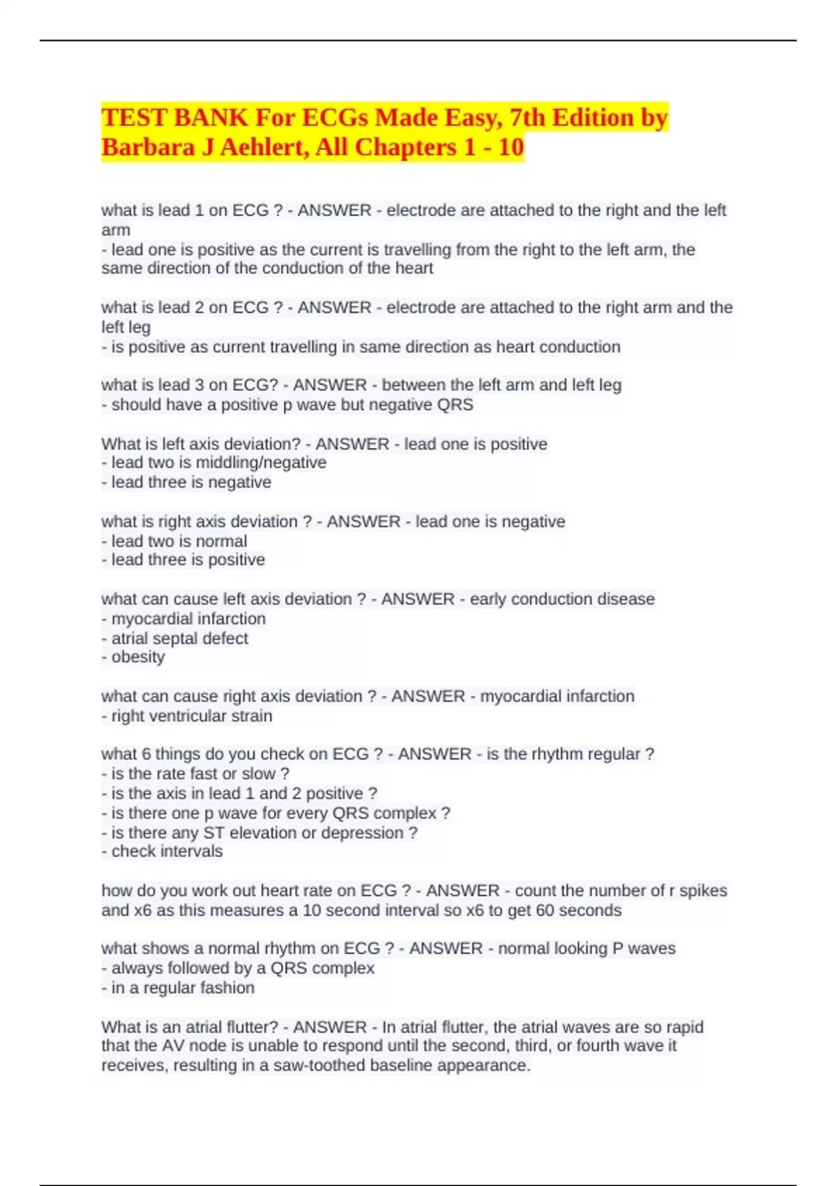 TEST BANK For ECGs Made Easy, 7th Edition by Barbara J Aehlert, All Chapters 1 - 10