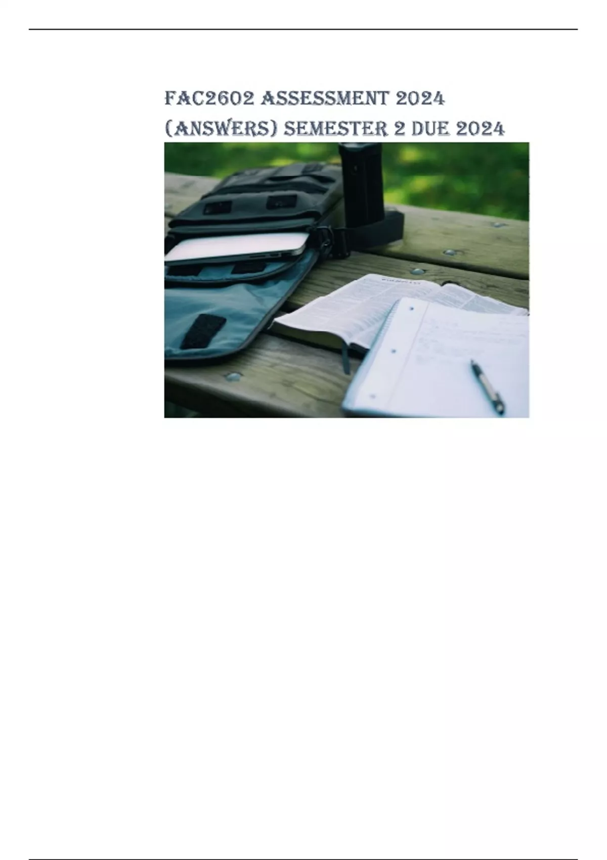 FAC2602 ASSESSMENT 2024 (ANSWERS) SEMESTER 2 Due 2024 DISTINCTION GUARANTEED 100%