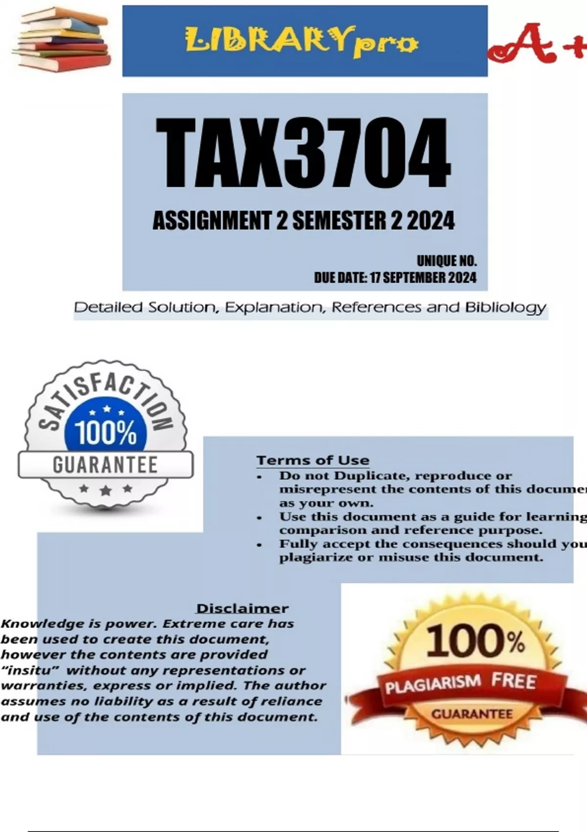 TAX3704 Assignment 2 Semester 2 due 17 September 2024
