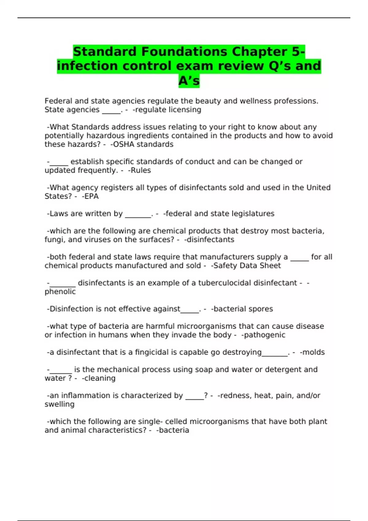 infection control exam review Q’s and
