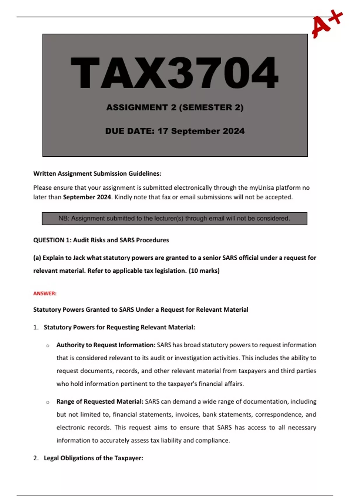 QUESTION 1: Audit Risks and SARS Procedures