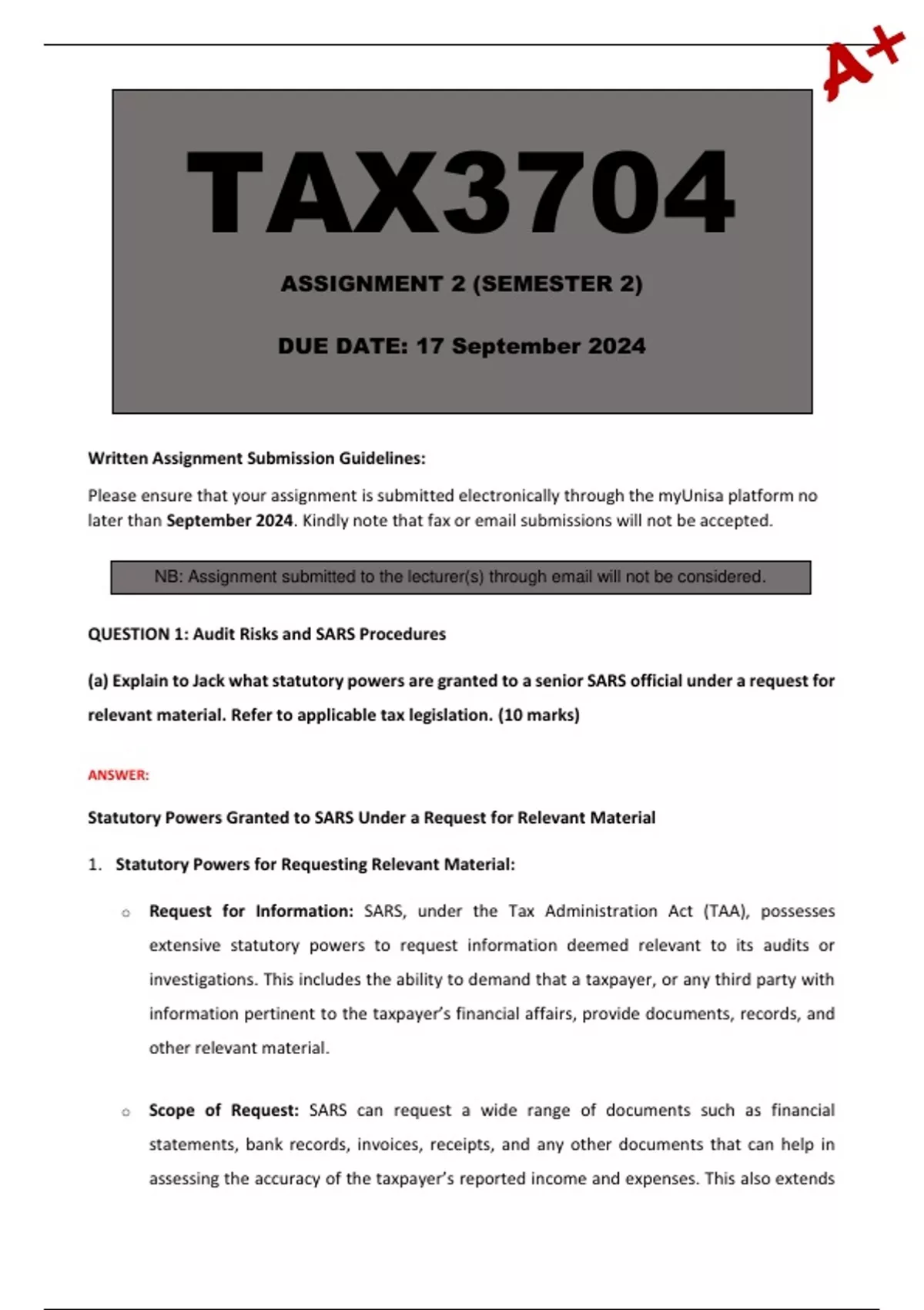 TAX3704 Assignment 2 (Semester 2) 2024 - Due 17 September 2024