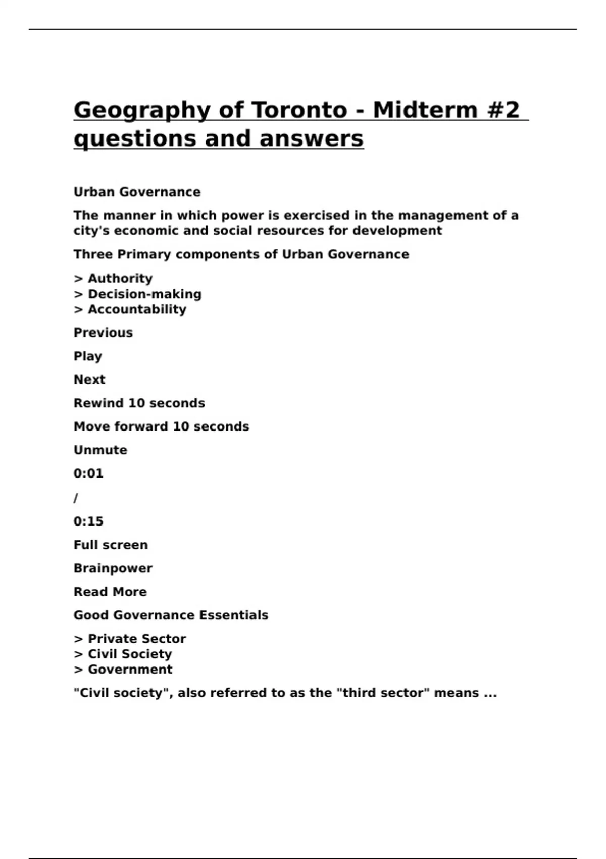 Geography of Toronto - Midterm -2 questions and answers.