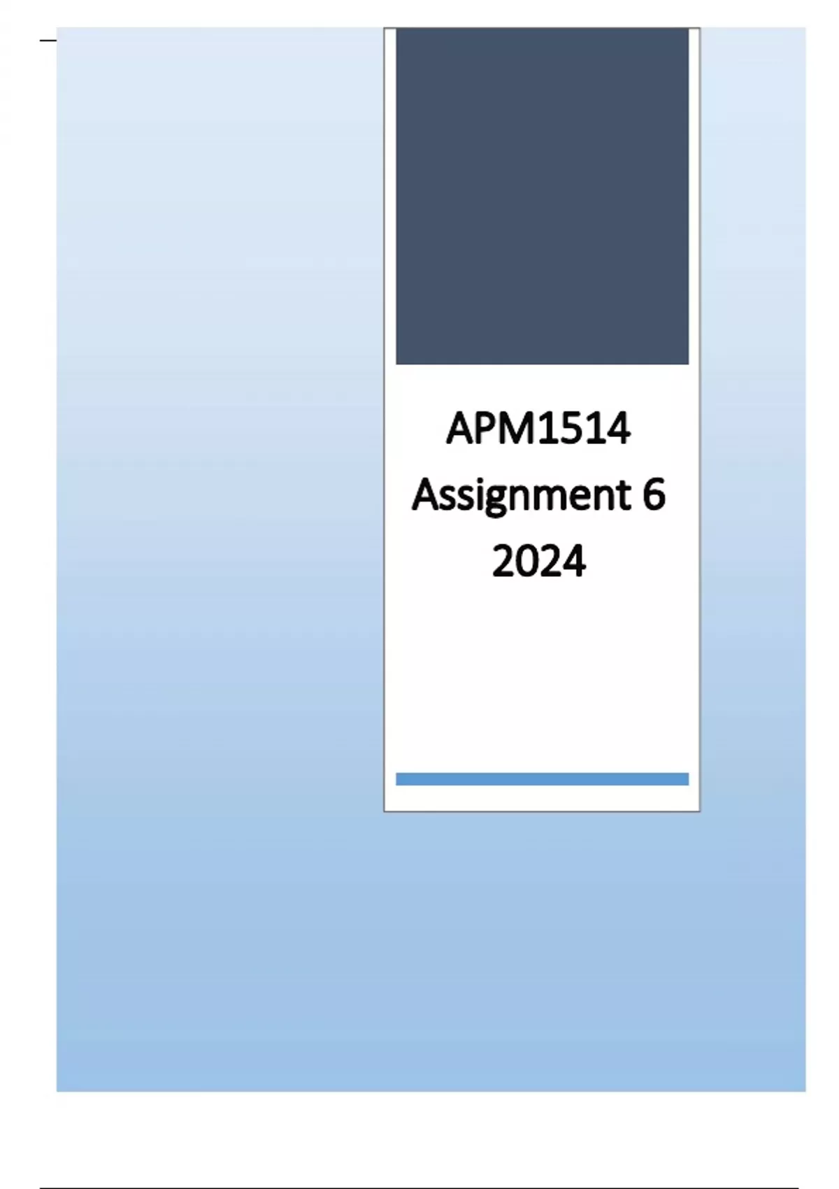 APM1514 Assignment 6 (COMPLETE ANSWERS) 2024